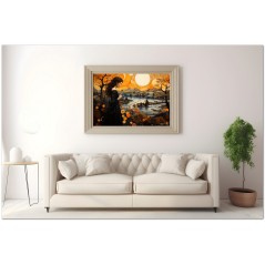 Abmessungen: Jedes Werk wird in einem einzigartigen Format gedruckt, mit einer Breite von 60, 80 oder 100 cm und einer proportionalen Höhe zum Originalbild. Die spezifische Größe wird basierend auf der Komposition des Werkes gewählt, um die beste visuelle Wirkung zu gewährleisten.