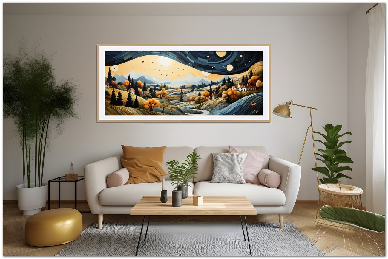 Abmessungen: Jedes Werk wird in einem einzigartigen Format gedruckt, mit einer Breite von 60, 80 oder 100 cm und einer proportionalen Höhe zum Originalbild. Die spezifische Größe wird basierend auf der Komposition des Werkes gewählt, um die beste visuelle Wirkung zu gewährleisten.