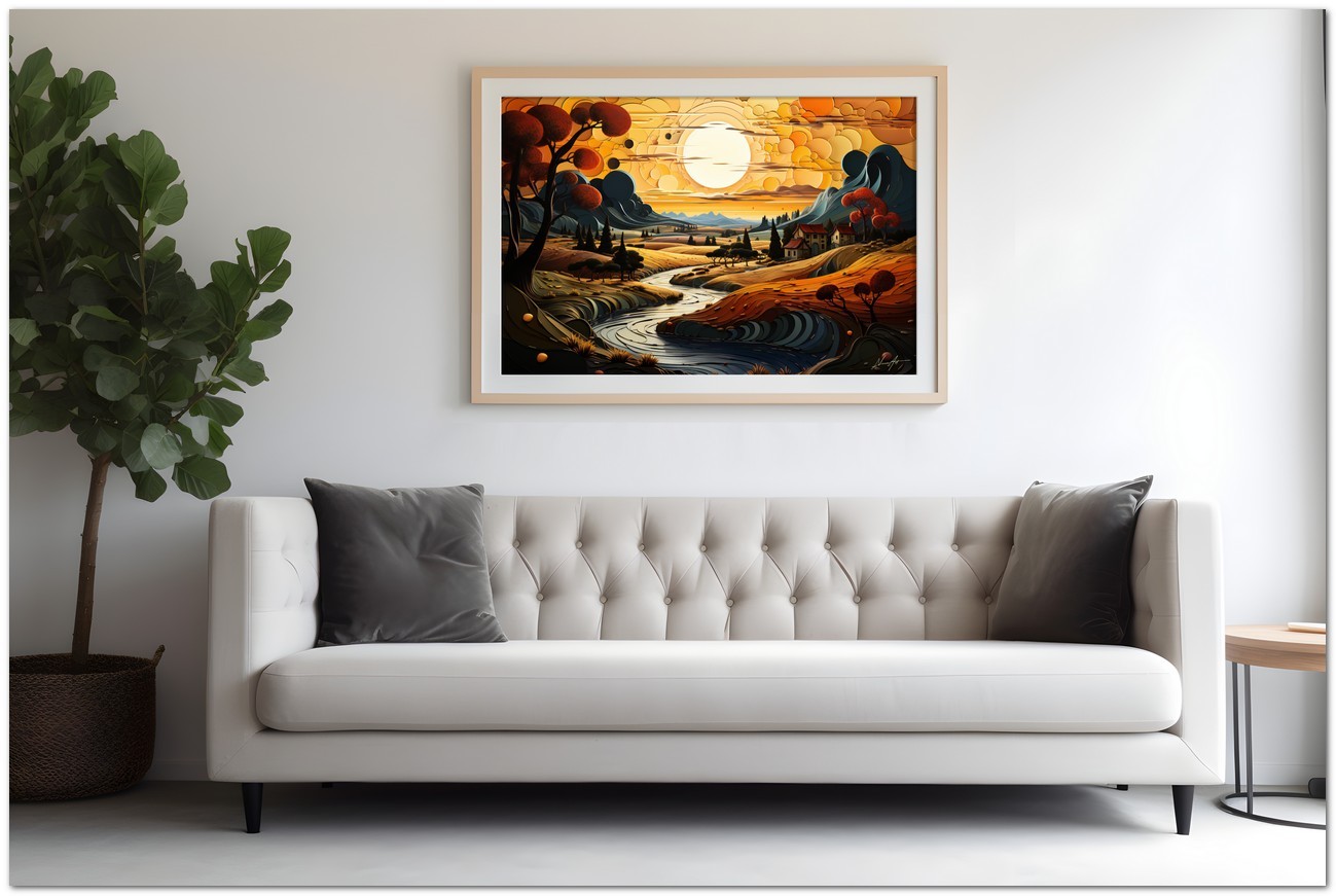 Abmessungen: Jedes Werk wird in einem einzigartigen Format gedruckt, mit einer Breite von 60, 80 oder 100 cm und einer proportionalen Höhe zum Originalbild. Die spezifische Größe wird basierend auf der Komposition des Werkes gewählt, um die beste visuelle Wirkung zu gewährleisten.