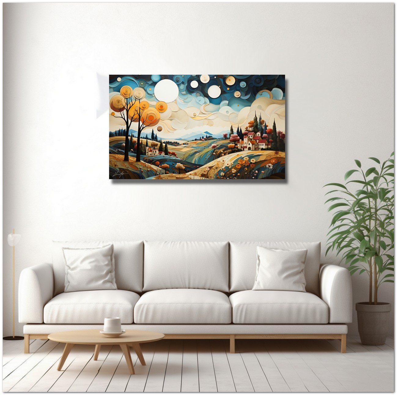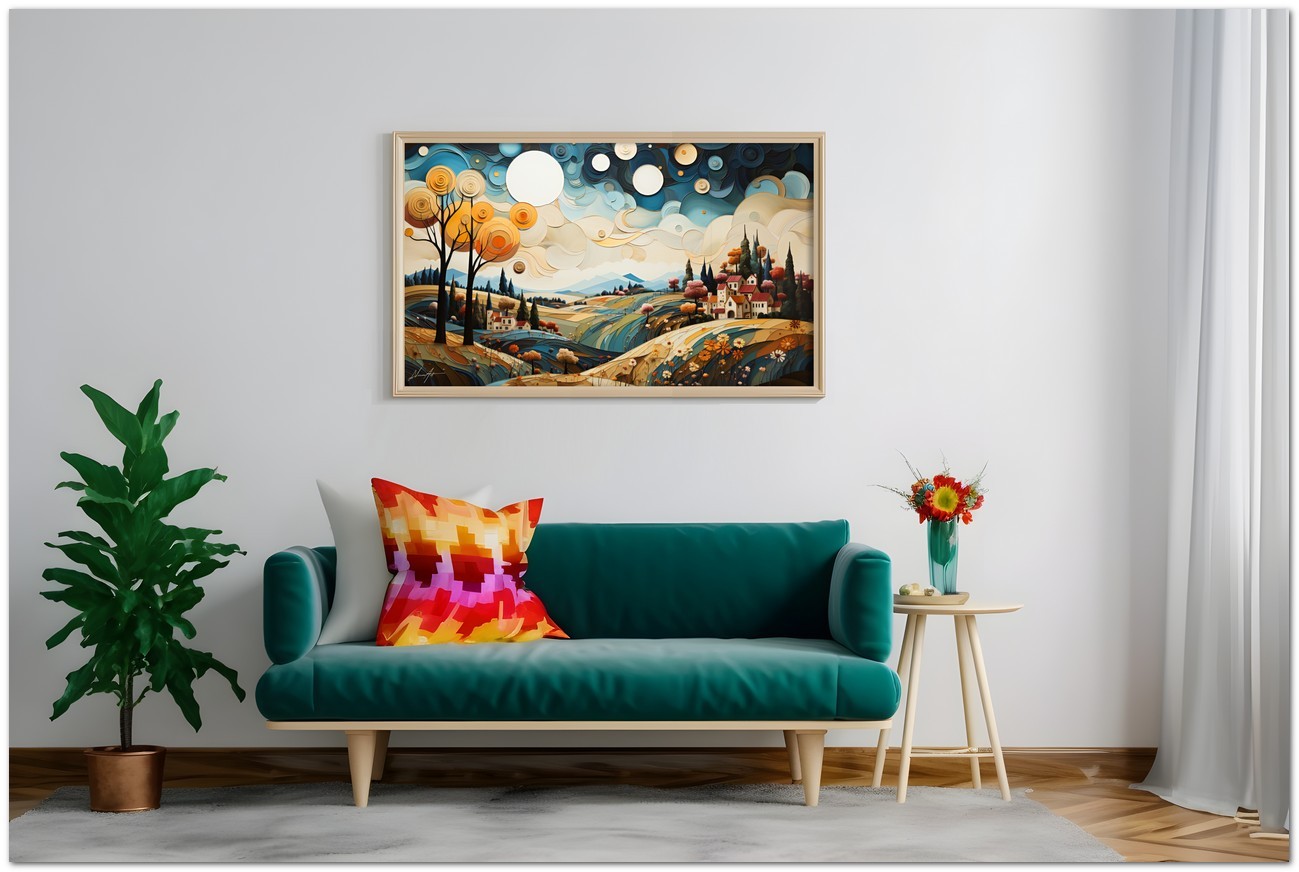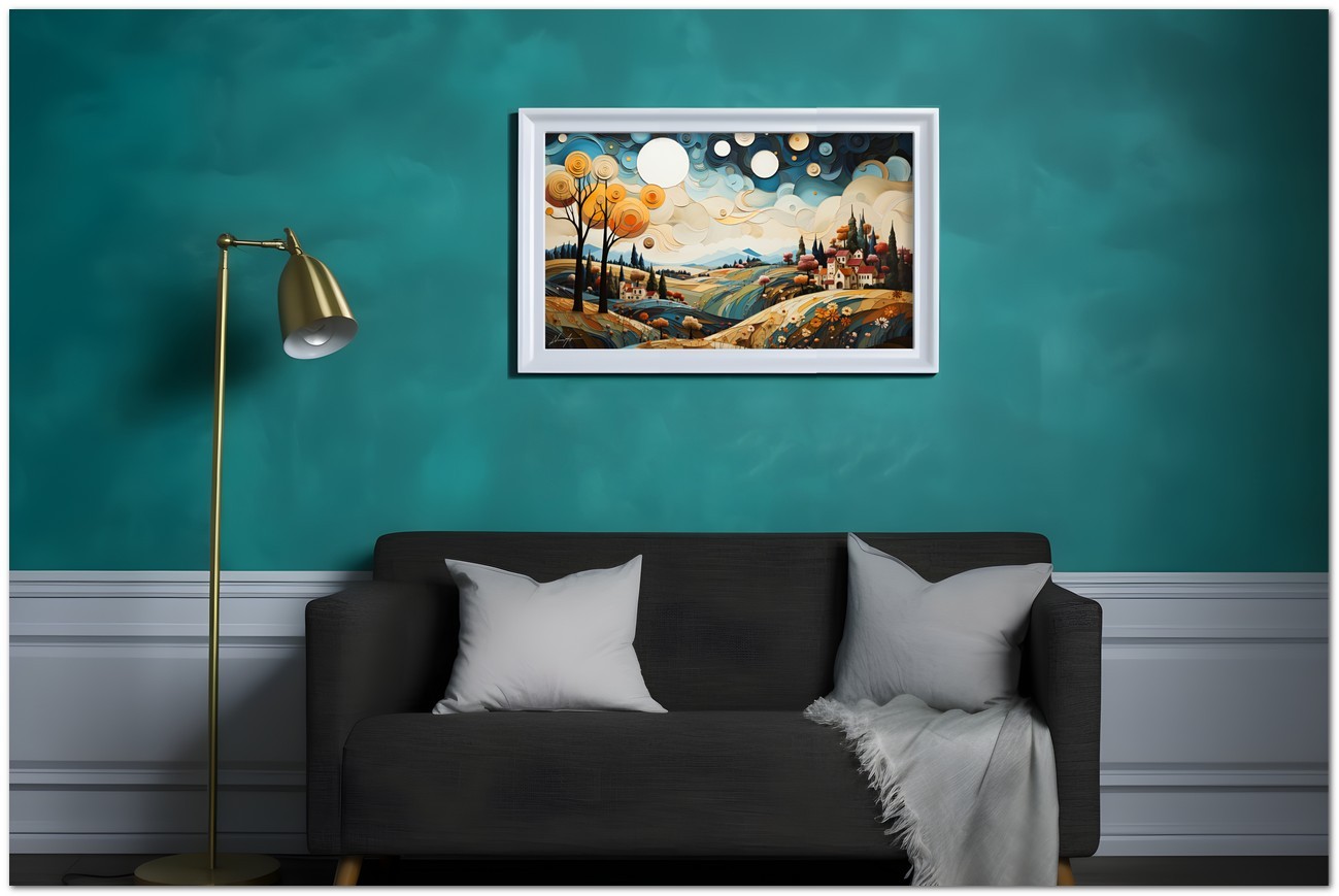 „Luce Lunare nel Paesaggio Sereno“ wird mit Fine Art Giclée-Drucktechnologie auf hochwertige Canvas-Leinwand reproduziert, was eine außergewöhnliche Farbwiedergabe und eine Haltbarkeit auf Museumsniveau garantiert.