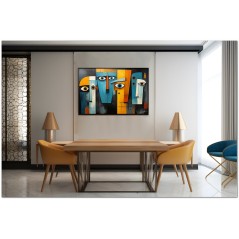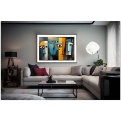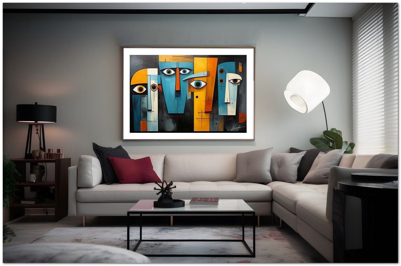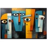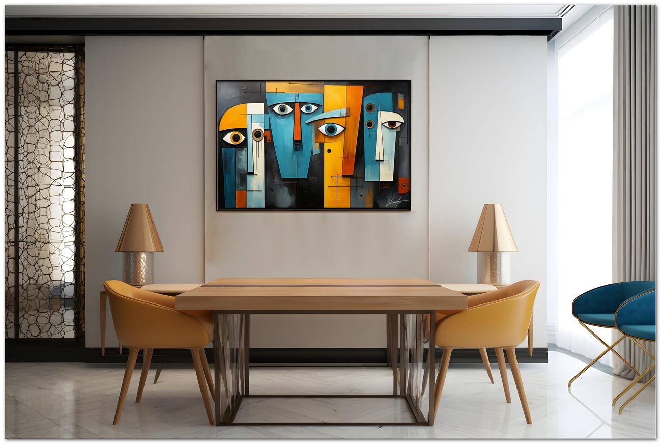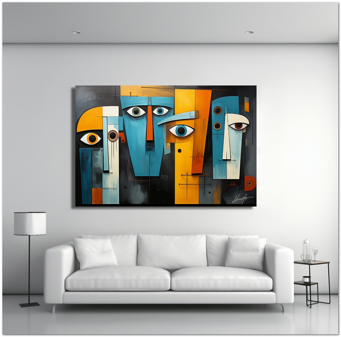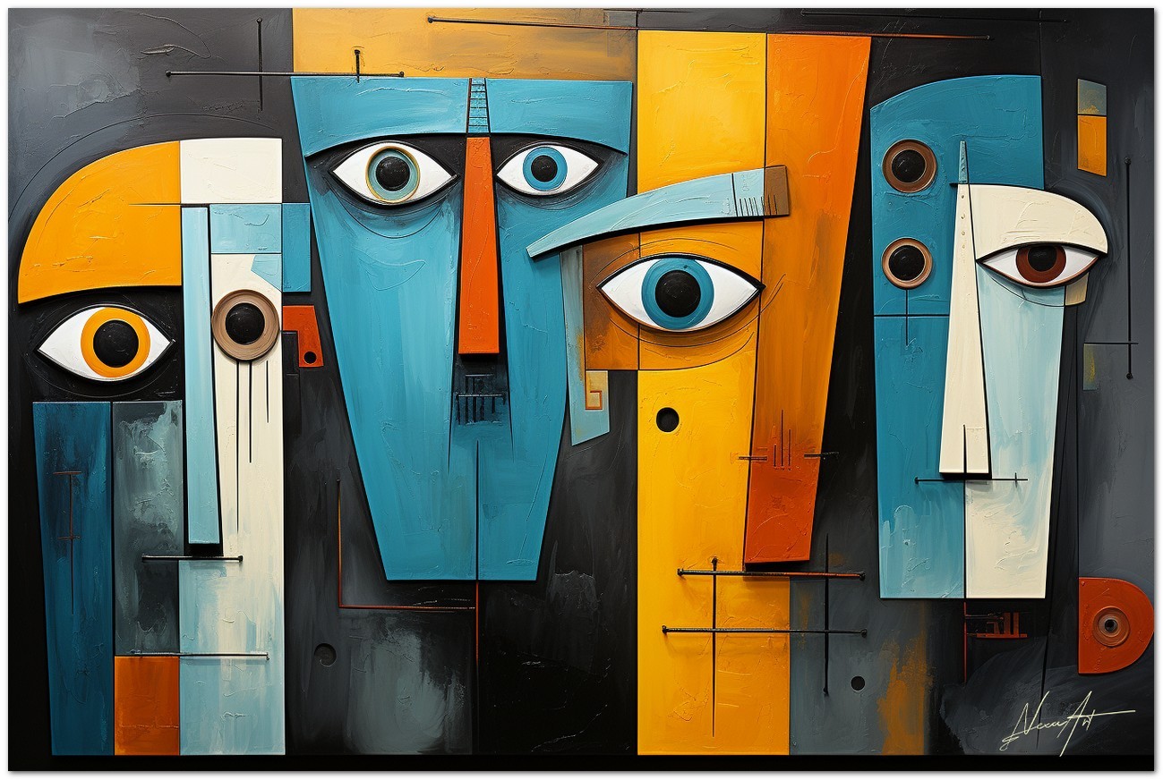 Das ausgestellte Gemälde zeigt eine faszinierende Anordnung abstrakter und dennoch ausdrucksstarker Gesichter, jedes mit seinen eigenen einzigartigen Eigenschaften und Emotionen. Die Komposition zeigt eine Vielzahl von Farben, Pinselstrichen und Techniken, was zu einem harmonischen und dennoch faszinierenden Kunstwerk führt. Aufgrund der detaillierten und getreuen Darstellung natürlicher Elemente kann das Werk mit dem Bildstil des Realismus in Verbindung gebracht werden. Über diese Arbeit: Klassifizierung, Techniken und Stile