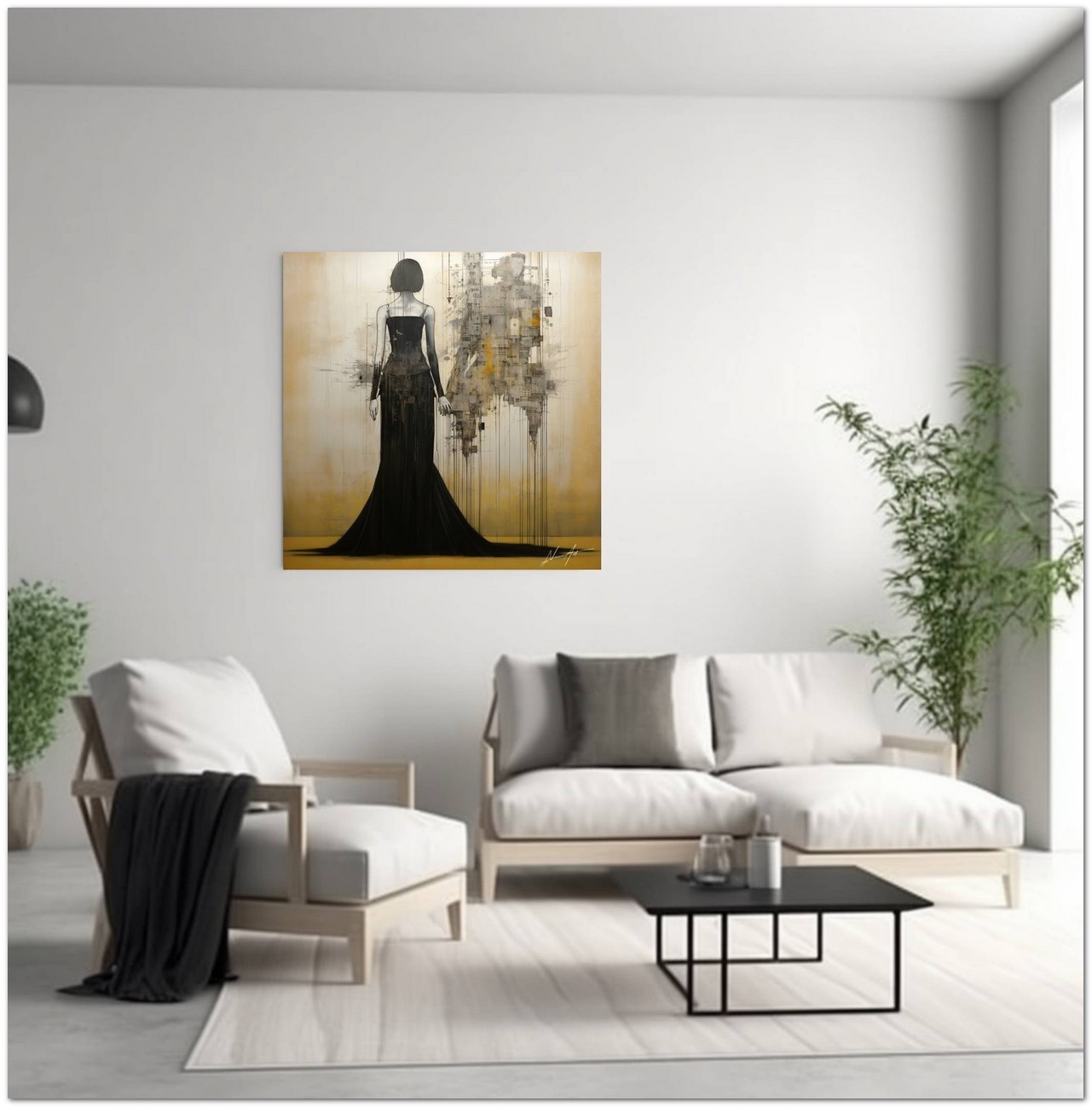 Das digitale Werk präsentiert uns eine wie mit Bleistift gezeichnet wirkende Frau, elegant in Schwarz und Weiß gekleidet, die versucht, dem die Hand zu schütteln, was jedoch nicht erwidern kann: ein Schatten an der Wand. Der Schatten definiert die abstrakten Konturen einer menschlichen Figur, scheint jedoch aus geometrischen Figuren und Strukturen zu bestehen. Aufgrund der detaillierten und getreuen Darstellung natürlicher Elemente kann das Werk mit dem Bildstil des Realismus in Verbindung gebracht werden. Über diese Arbeit: Klassifizierung, Techniken und Stile