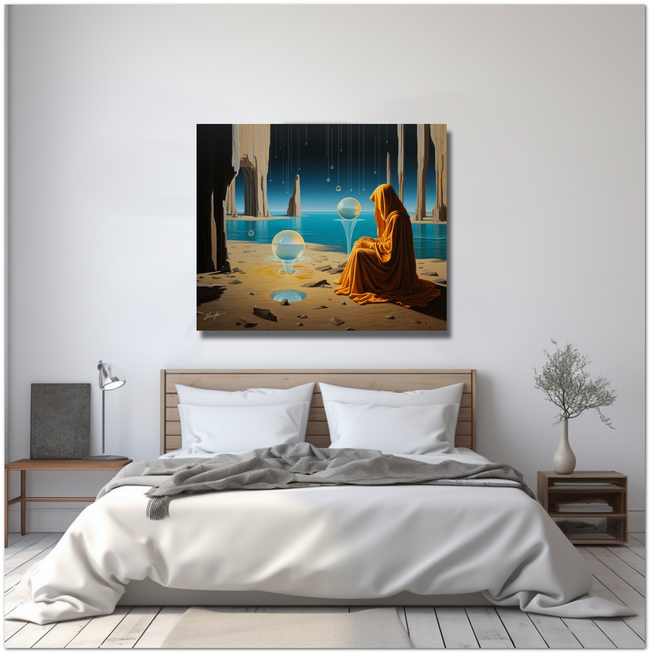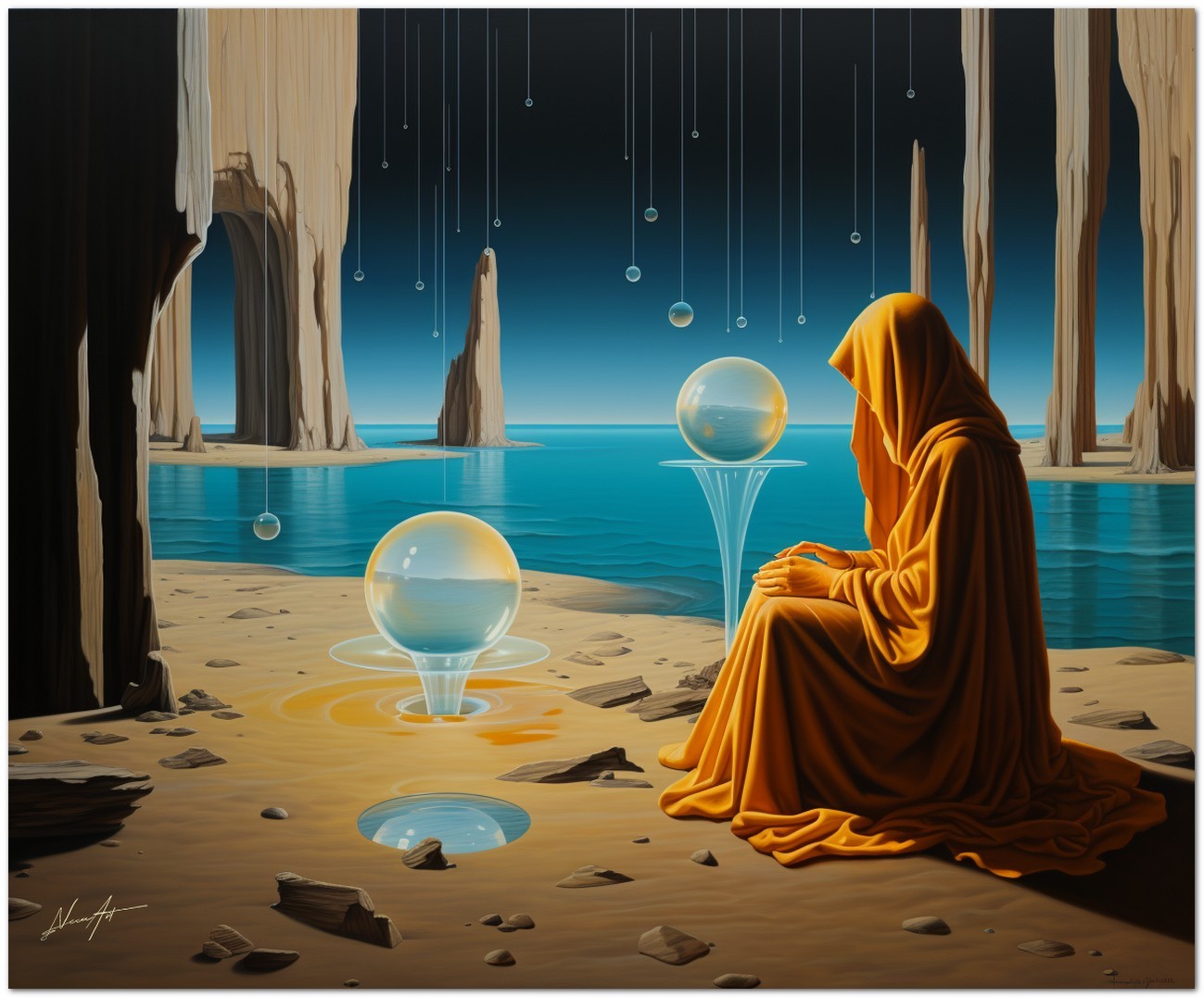 Abmessungen: Jedes Werk wird in einem einzigartigen Format gedruckt, mit einer Breite von 60, 80 oder 100 cm und einer proportionalen Höhe zum Originalbild. Die spezifische Größe wird basierend auf der Komposition des Werkes gewählt, um die beste visuelle Wirkung zu gewährleisten.