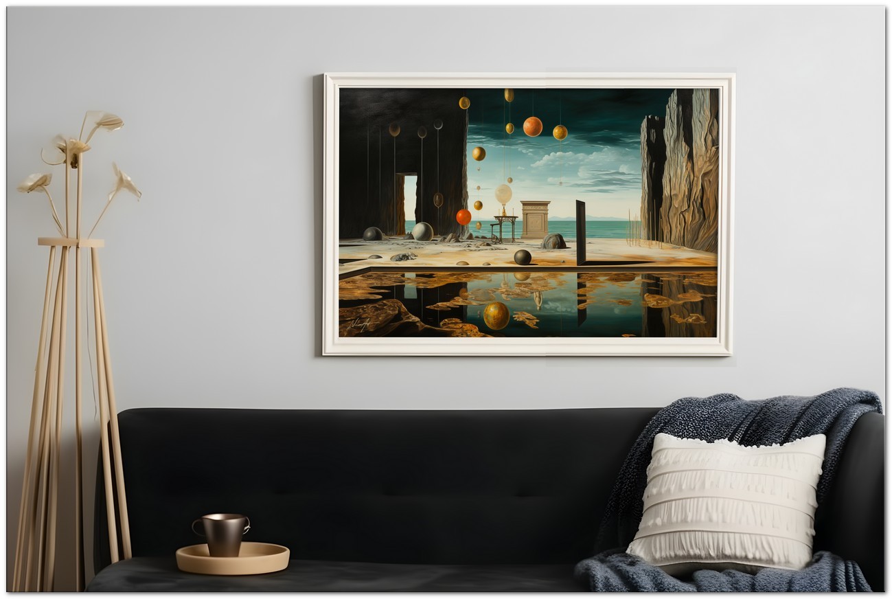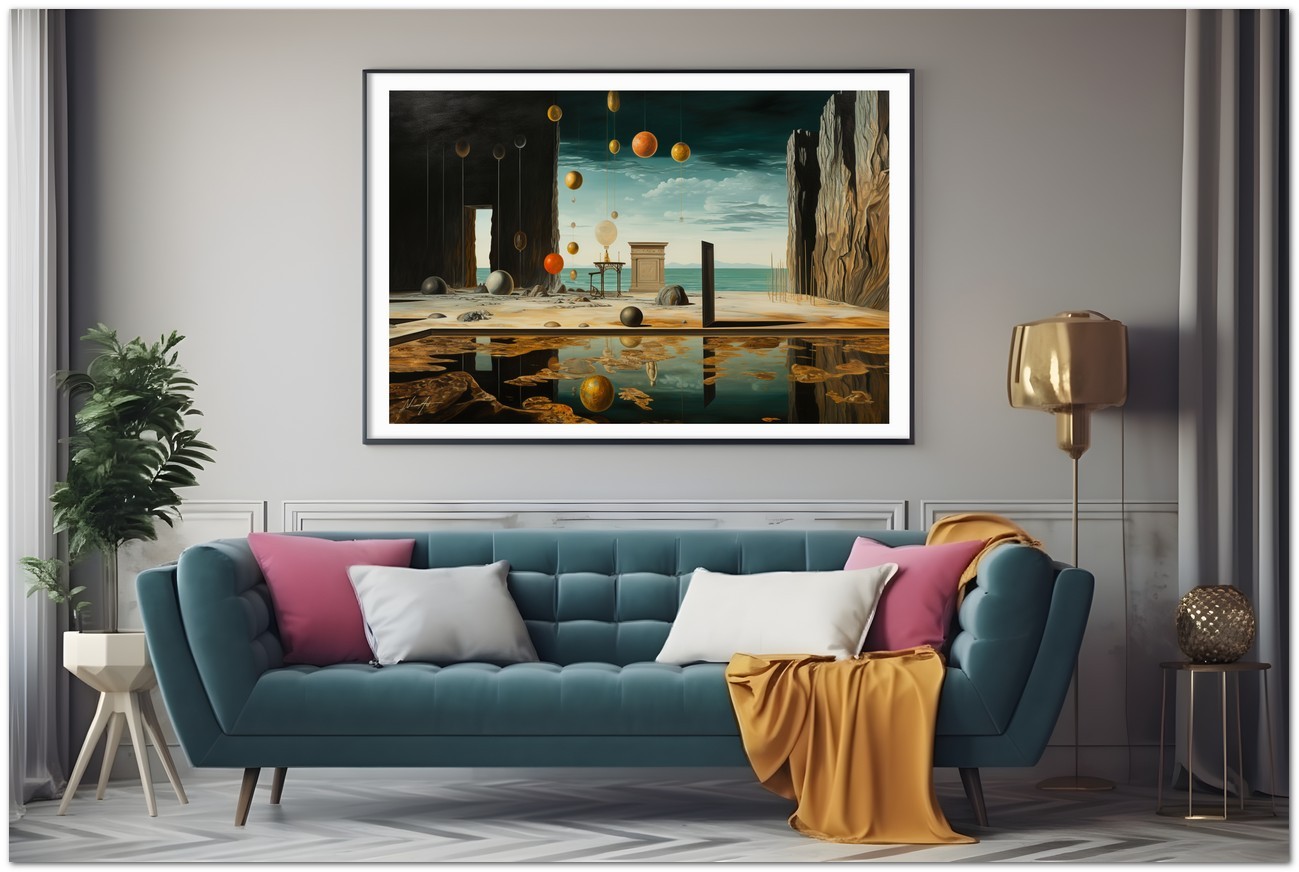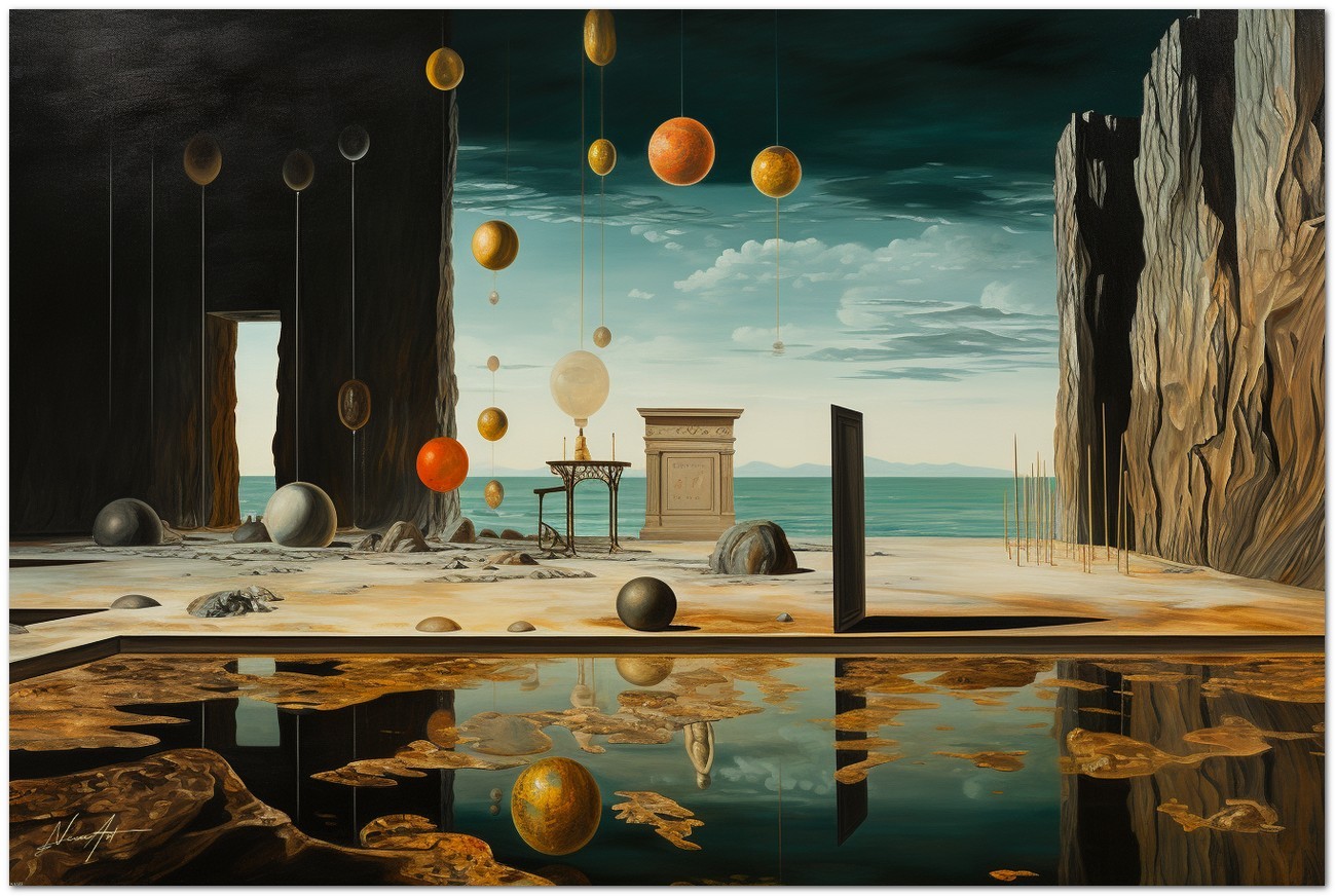 „Riflessioni Surreali“ wird mit Fine Art Giclée-Drucktechnologie auf hochwertige Canvas-Leinwand reproduziert, was eine außergewöhnliche Farbwiedergabe und eine Haltbarkeit auf Museumsniveau garantiert.