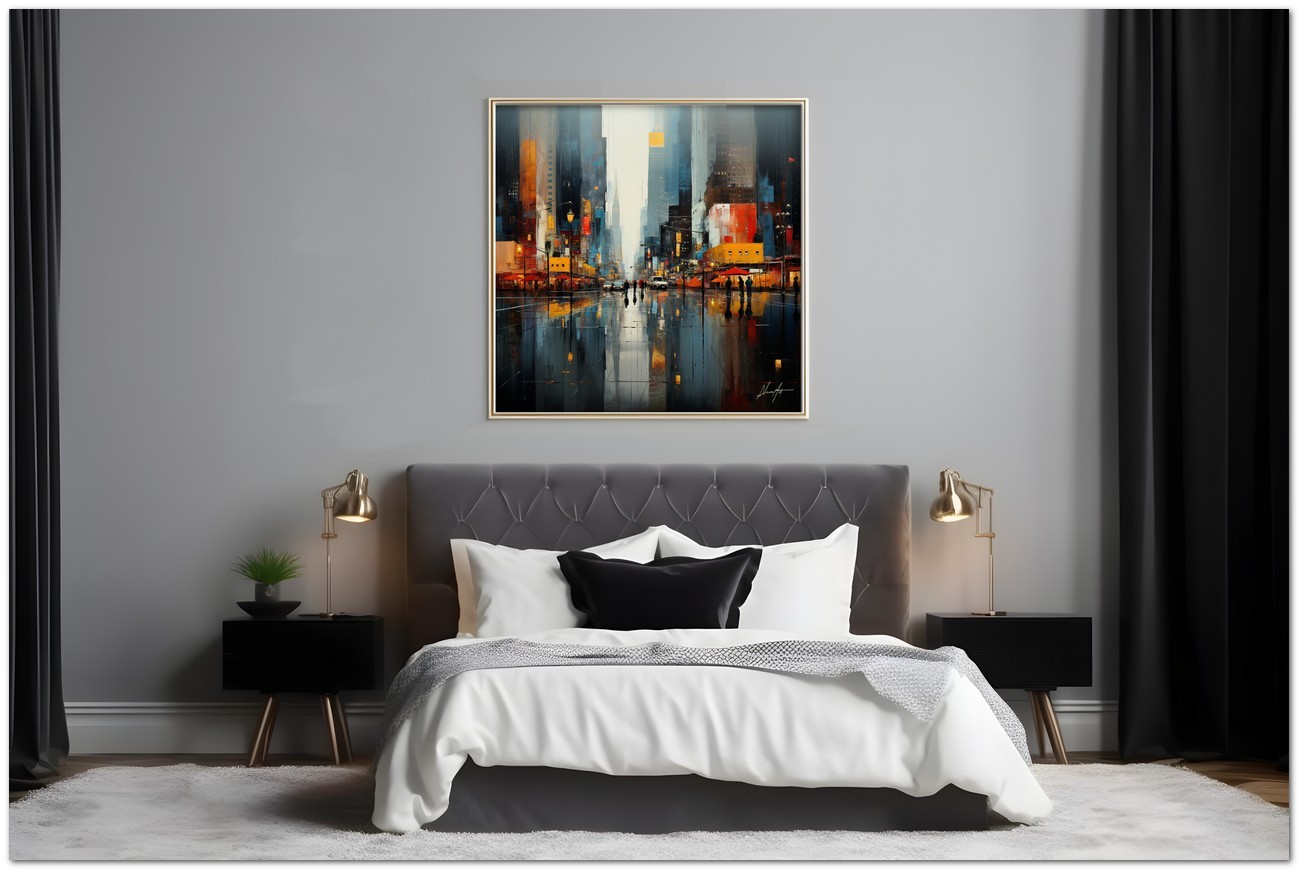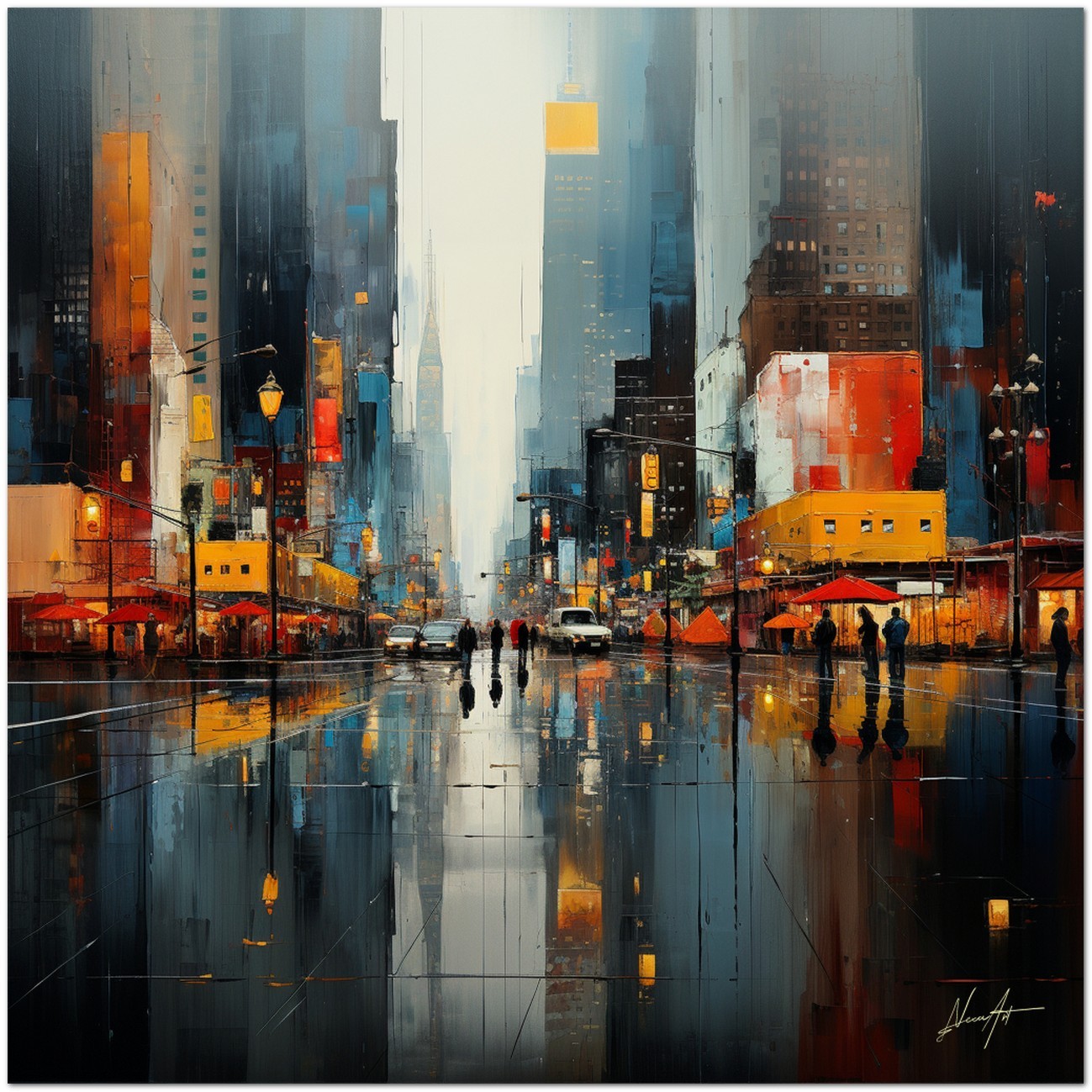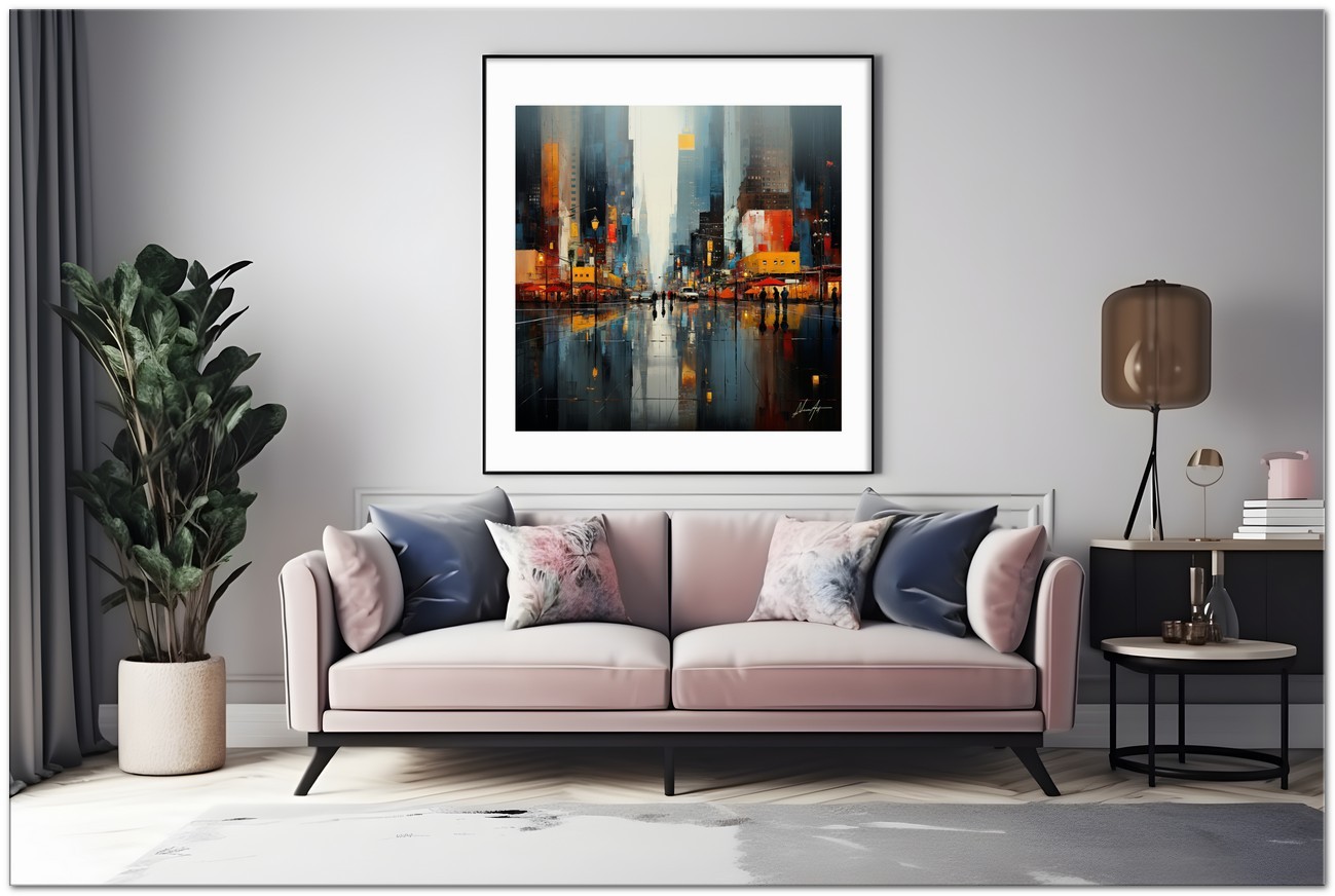 „Pioggia Urbana“ wird mit Fine Art Giclée-Drucktechnologie auf hochwertige Canvas-Leinwand reproduziert, was eine außergewöhnliche Farbwiedergabe und eine Haltbarkeit auf Museumsniveau garantiert.