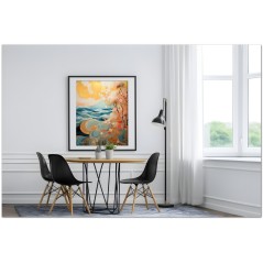 Abmessungen: Jedes Werk wird in einem einzigartigen Format gedruckt, mit einer Breite von 60, 80 oder 100 cm und einer proportionalen Höhe zum Originalbild. Die spezifische Größe wird basierend auf der Komposition des Werkes gewählt, um die beste visuelle Wirkung zu gewährleisten.