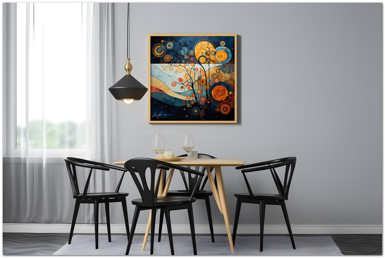Abmessungen: Jedes Werk wird in einem einzigartigen Format gedruckt, mit einer Breite von 60, 80 oder 100 cm und einer proportionalen Höhe zum Originalbild. Die spezifische Größe wird basierend auf der Komposition des Werkes gewählt, um die beste visuelle Wirkung zu gewährleisten.