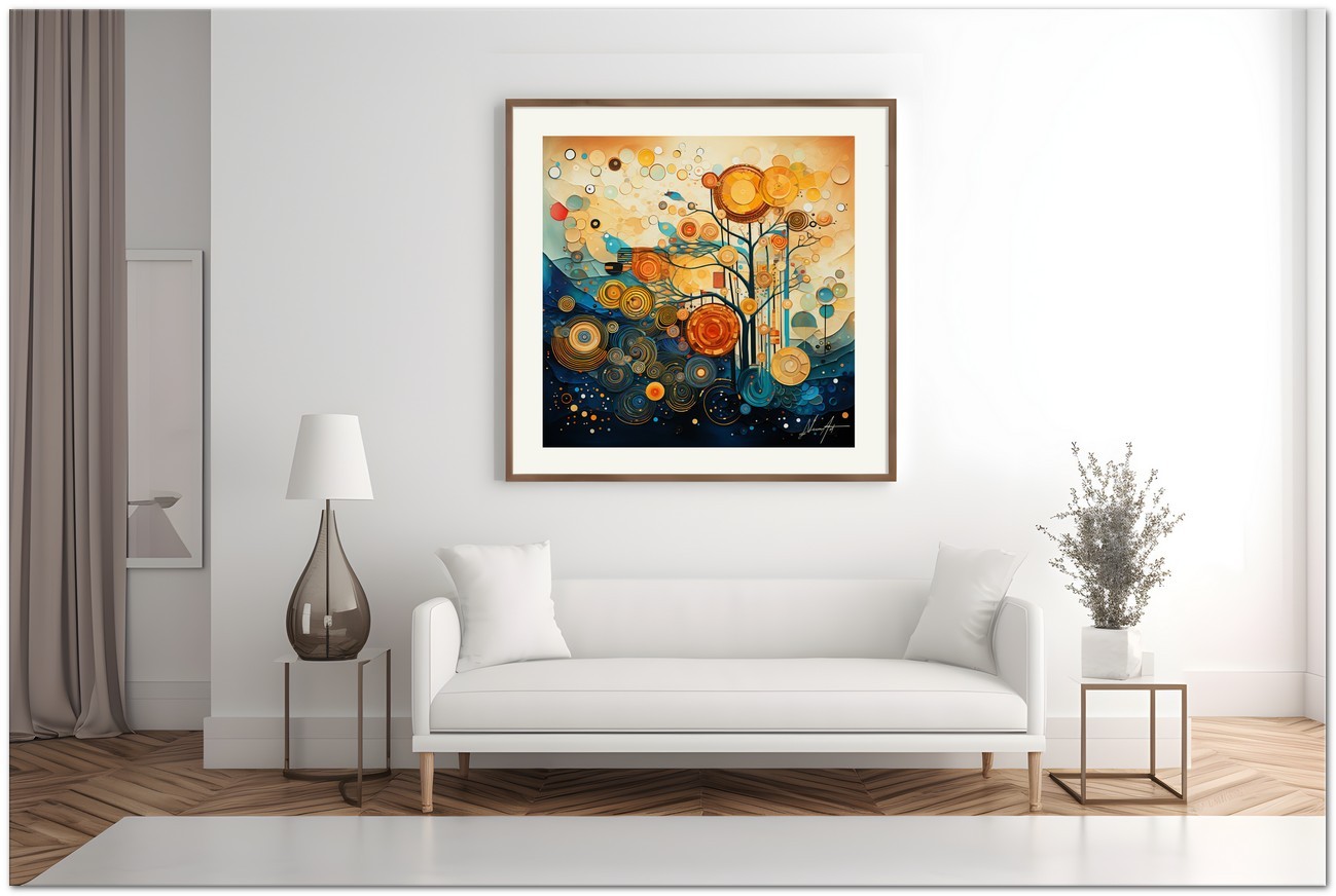 Abmessungen: Jedes Werk wird in einem einzigartigen Format gedruckt, mit einer Breite von 60, 80 oder 100 cm und einer proportionalen Höhe zum Originalbild. Die spezifische Größe wird basierend auf der Komposition des Werkes gewählt, um die beste visuelle Wirkung zu gewährleisten.