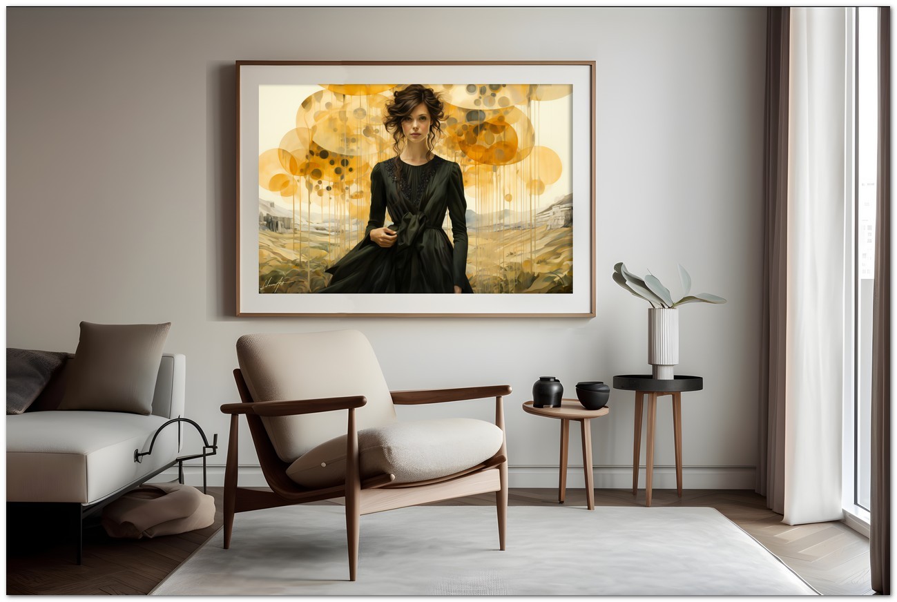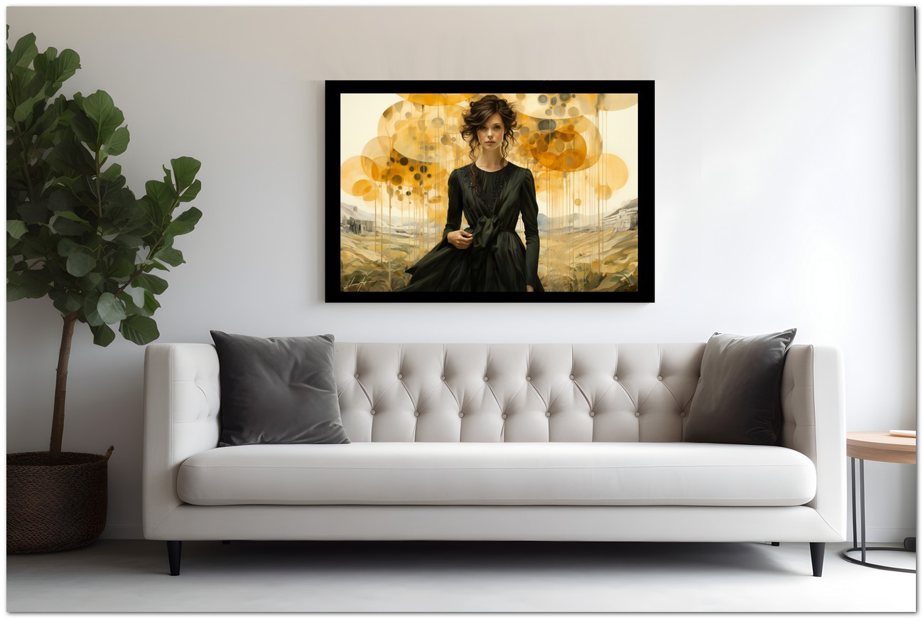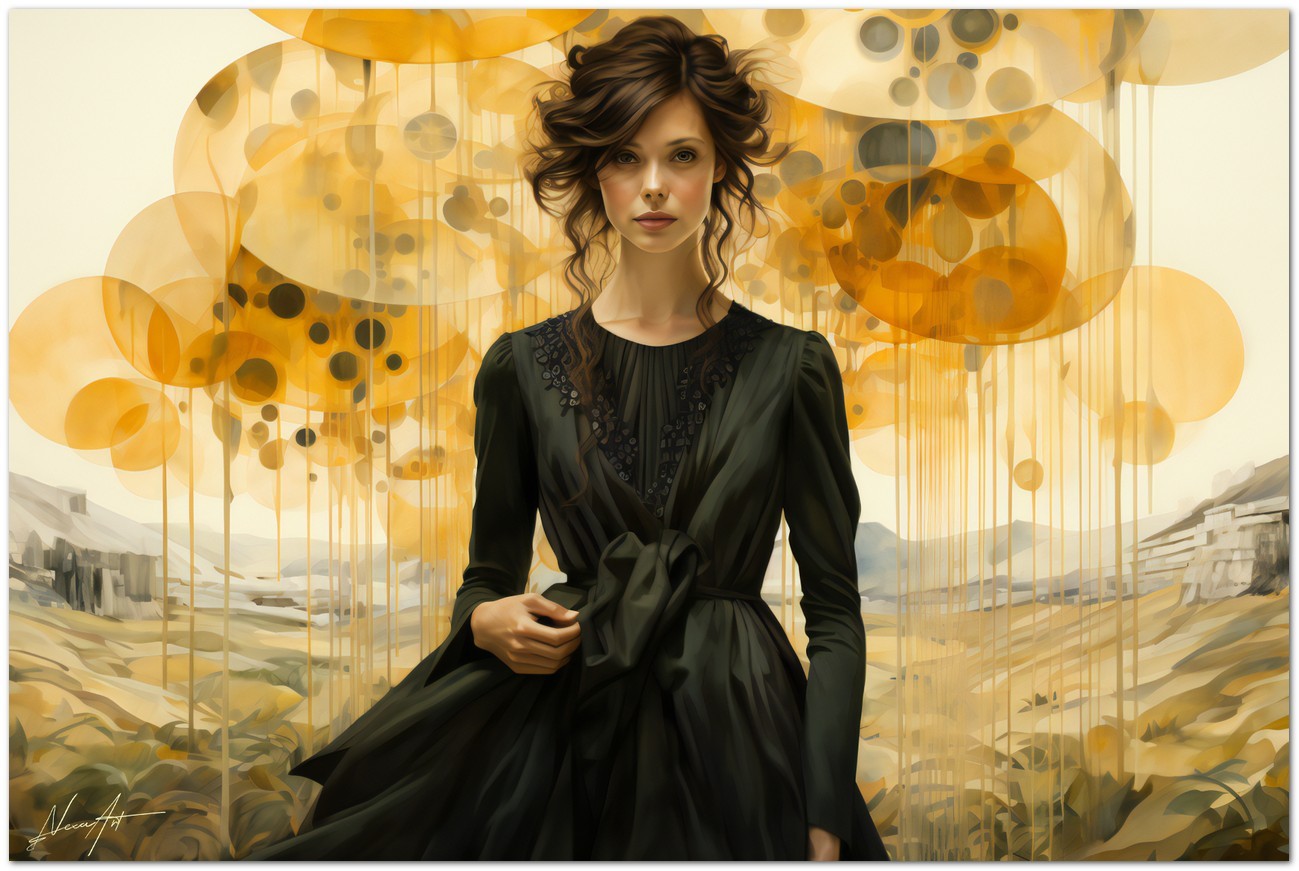 „Woman in Black“ ist ein digitales Werk, das eine faszinierende Kombination aus Geheimnis und Raffinesse zum Ausdruck bringt. Die Komposition des Werkes, in deren Mittelpunkt die Figur einer elegant in Schwarz gekleideten Frau steht, spielt mit Licht- und Schattenkontrasten, um einen faszinierenden und einnehmenden visuellen Effekt zu erzeugen. Über „Woman in Black“: Klassifizierung, Techniken und Stile