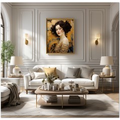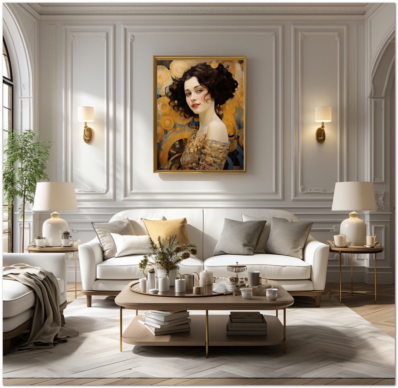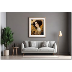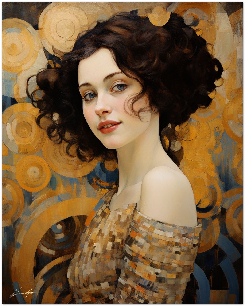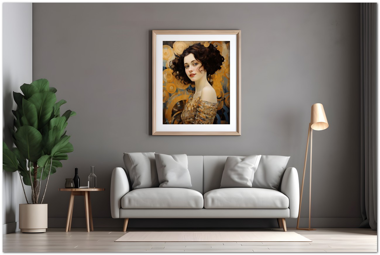 Im Mittelpunkt des Gemäldes steht das bezaubernde Porträt einer lockigen Frau. Der Künstler hat die Gesichtszüge der Frau gekonnt wiedergegeben und die Essenz ihres ausdrucksstarken Gesichts eingefangen. Die faszinierenden Augen der Frau, geschmückt mit aufwendigen Details, hypnotisieren den Betrachter. Aufgrund der detaillierten und getreuen Darstellung natürlicher Elemente kann das Werk mit dem Bildstil des Realismus in Verbindung gebracht werden. Über diese Arbeit: Klassifizierung, Techniken und Stile