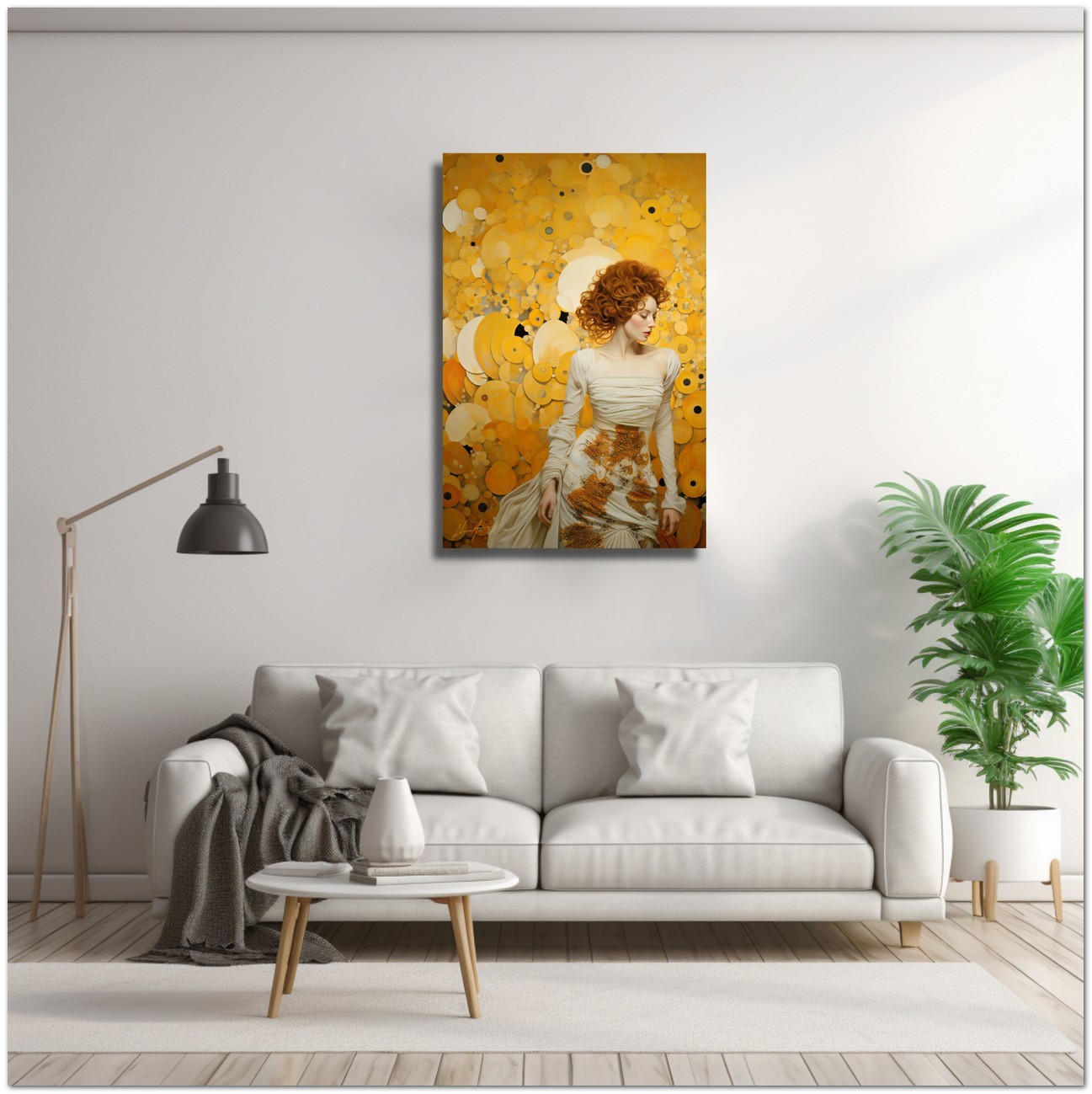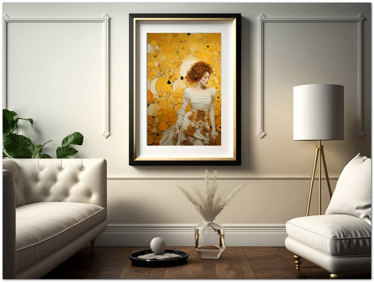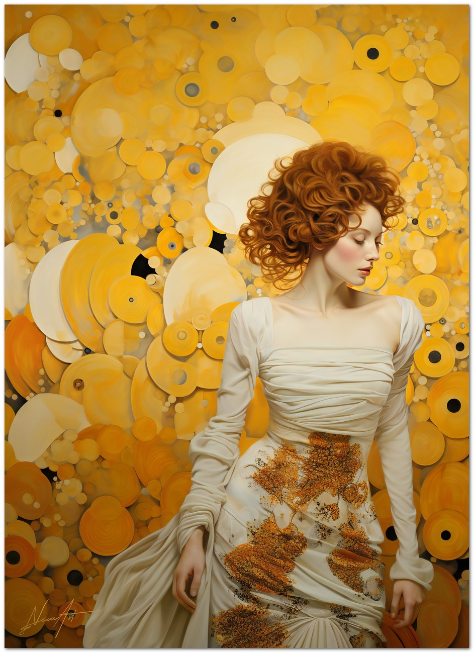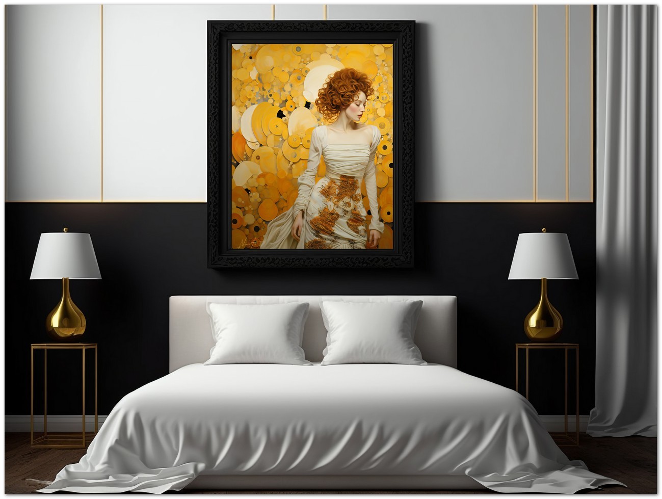 Im Mittelpunkt steht eine Frau mit leuchtend roten Haaren. Sein Bild nimmt einen Großteil der Leinwand ein und lenkt die Aufmerksamkeit auf seine Besonderheiten. Der Gesichtsausdruck der Frau ist rätselhaft und strahlt ein Gefühl von Geheimnis und Faszination aus. Die Komposition vermittelt durch den Einsatz von Farbe. Die Essenz von Mystery and Color: Donna's Variations liegt in seiner Entstehung: eine Verbindung von künstlicher Intelligenz und persönlicher künstlerischer Note. Ursprünglich durch KI geformt, werden diese Werke manuell überarbeitet, um ihnen Bedeutung und Schönheit zu verleihen. Das Ergebnis sind einzigartige digitale Meisterwerke, in denen Technologie und Kunst verschmelzen.