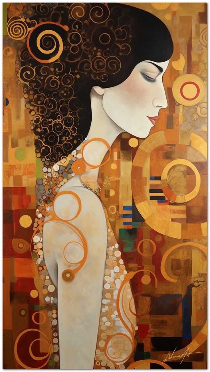 „Spiral Symphony“ ist ein digitales Werk, das eine faszinierende Mischung aus Abstraktionismus und Realismus darstellt. In der Mitte bietet eine Frau, die aus einer komplizierten Reihe von Linien, Kreisen und Mustern hervortritt, ein einzigartiges visuelles Spektakel. Ihr mit anmutigen Spiralen geschmücktes Gesicht wird zum Mittelpunkt, der ein Gefühl von Geheimnis und Intrige hervorruft. Farbkontraste und die Spiralen hinter seinen gesenkten Augenlidern verwandeln das Werk in einen Strudel aus Emotionen und tiefen Gedanken. Details zum Werk „Spiral Symphony“: Einordnung, Techniken und Stile