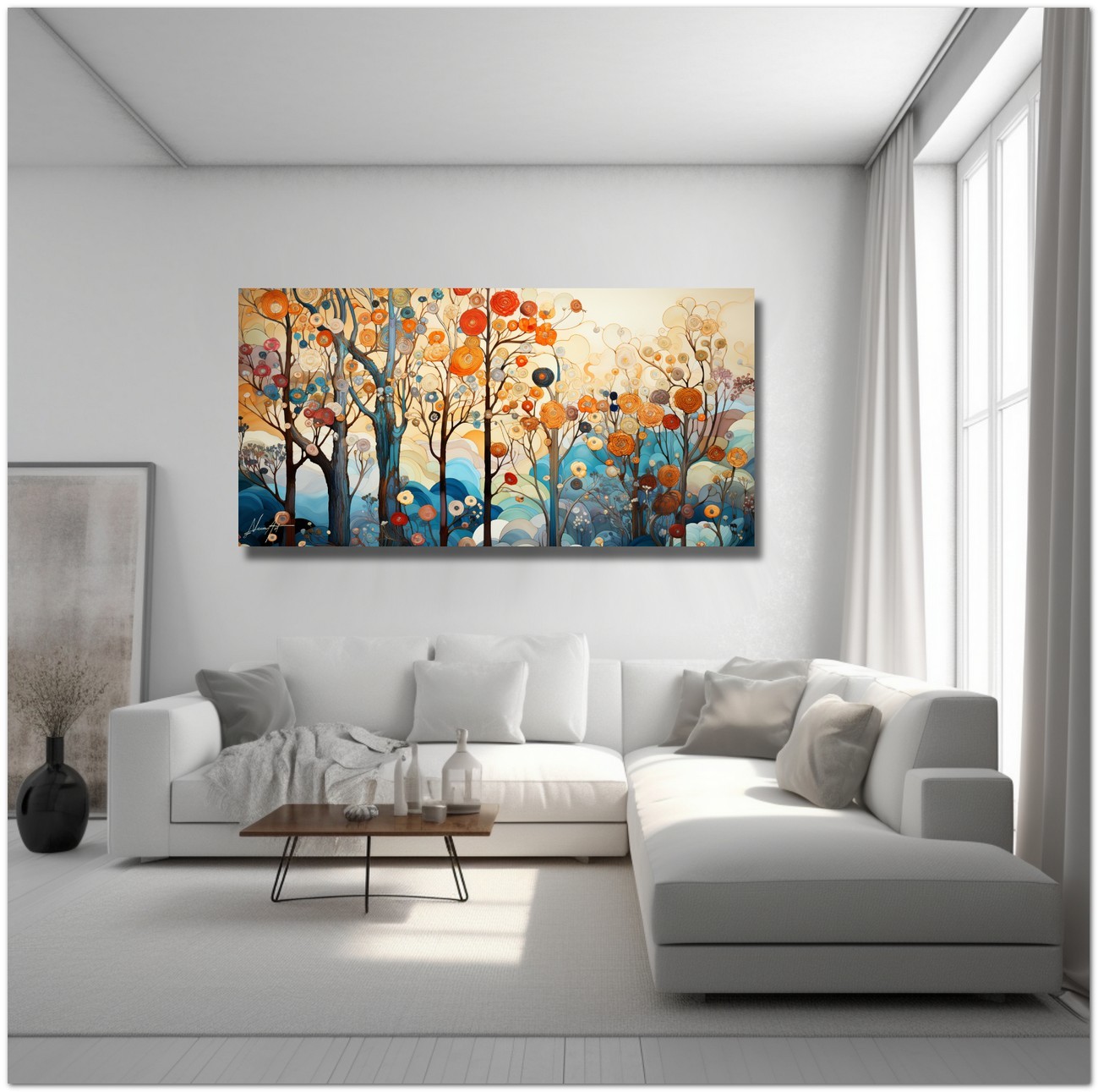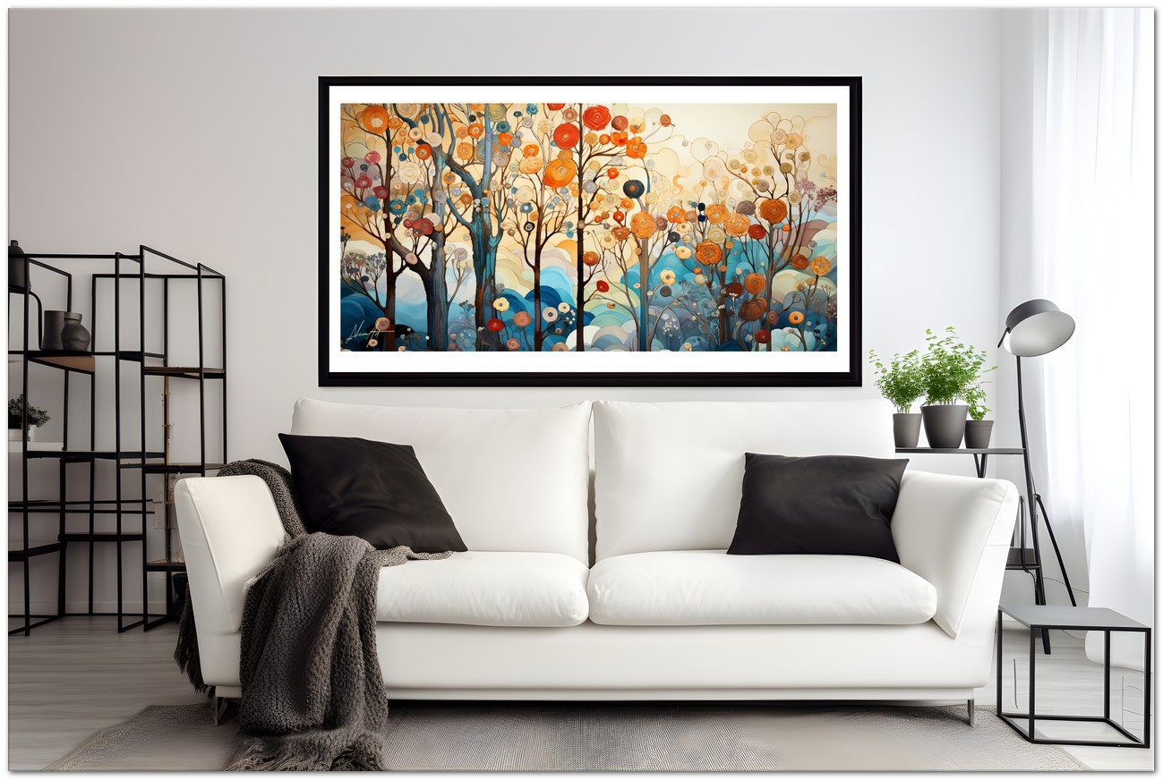 "Bosco di Pensieri" is reproduced using Fine Art Giclée printing technology on high-quality canvas, ensuring exceptional color rendering and museum-level durability.