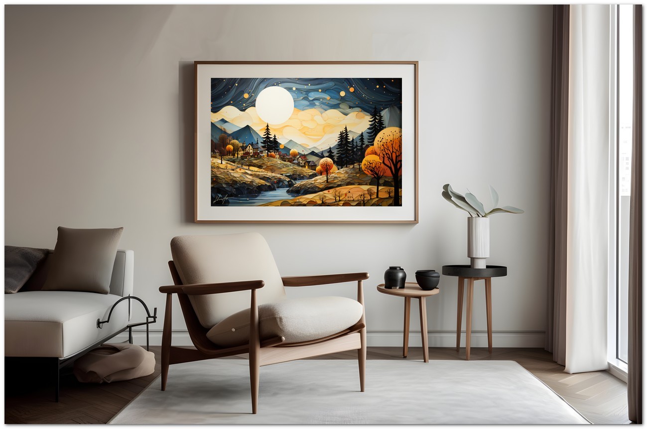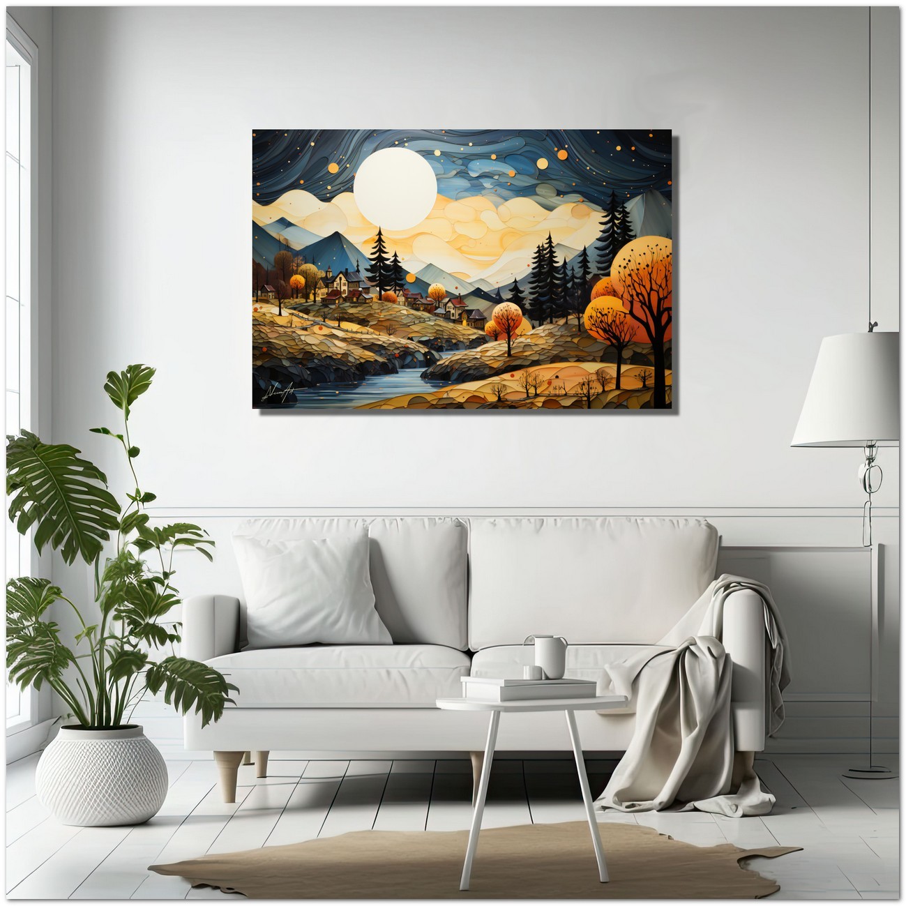 "Notturno Autunnale" is reproduced using Fine Art Giclée printing technology on high-quality canvas, ensuring exceptional color rendering and museum-level durability.