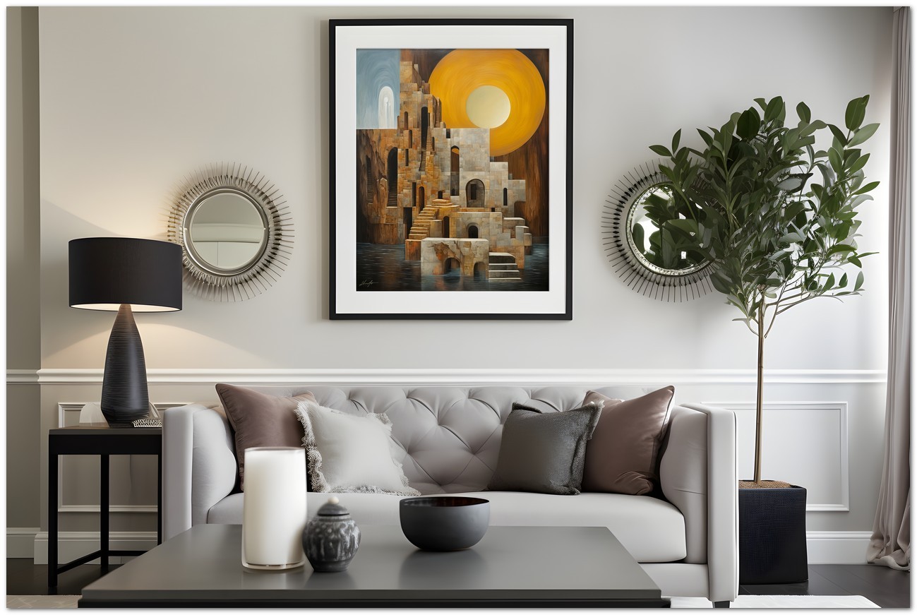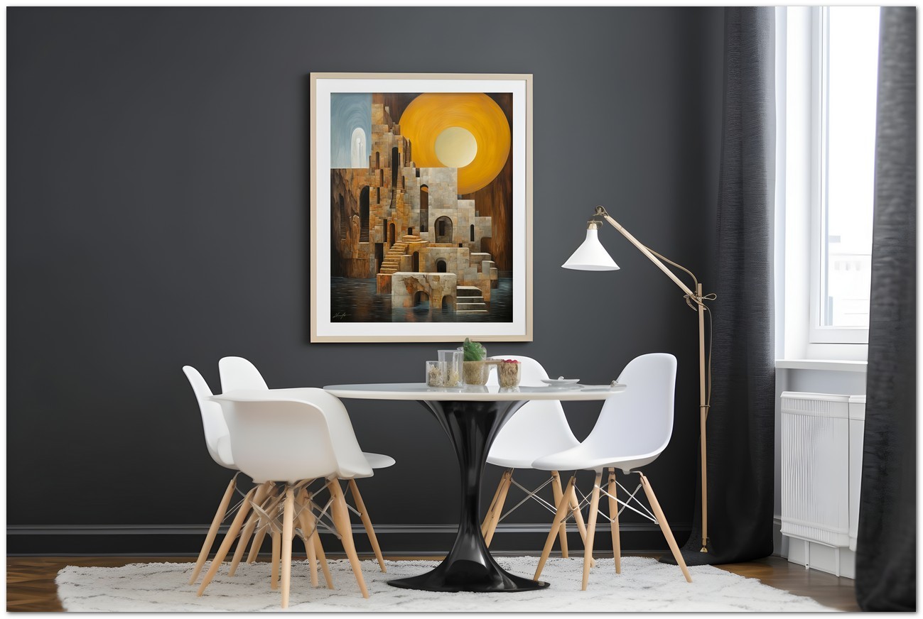 From the "Dreams and Structures" collection, this artwork merges architecture and imagination in a dreamlike vision of impossible spaces.