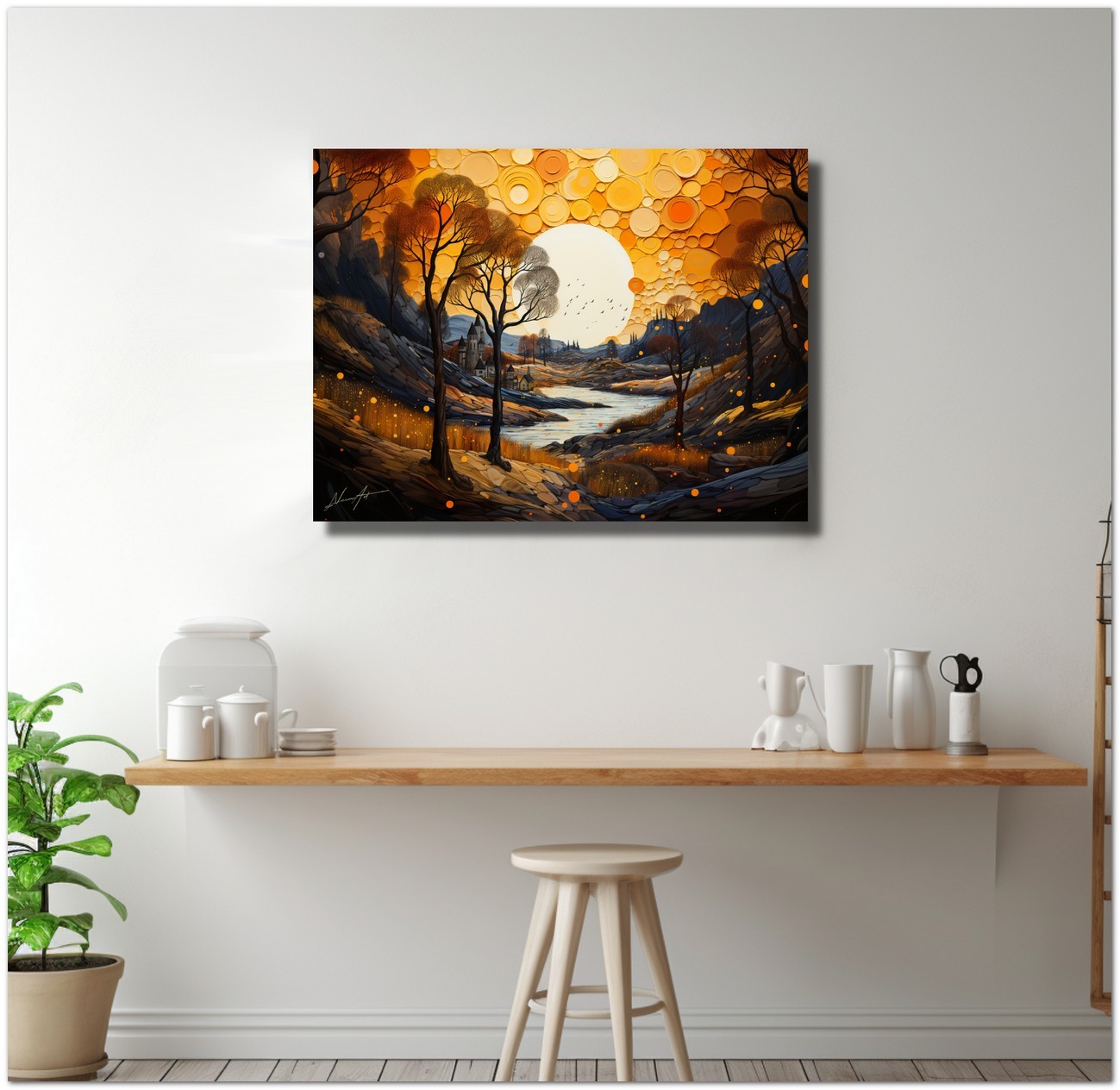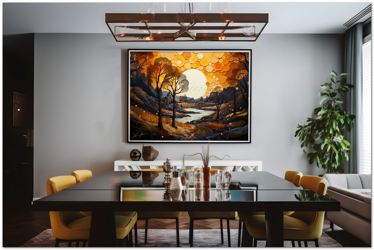 "Riflessi d'Autunno" is reproduced using Fine Art Giclée printing technology on high-quality canvas, ensuring exceptional color rendering and museum-level durability.