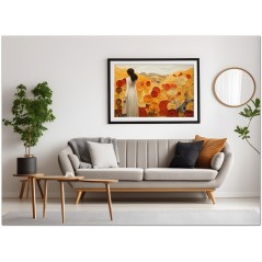 "La Dama tra i Fiori" is reproduced using Fine Art Giclée printing technology on high-quality canvas, ensuring exceptional color rendering and museum-level durability.