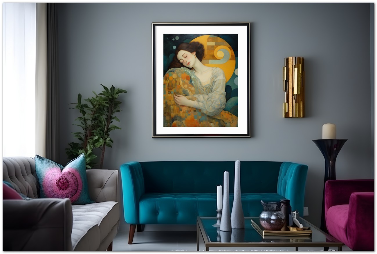 "Sogni Intrecciati" is reproduced using Fine Art Giclée printing technology on high-quality canvas, ensuring exceptional color rendering and museum-level durability.