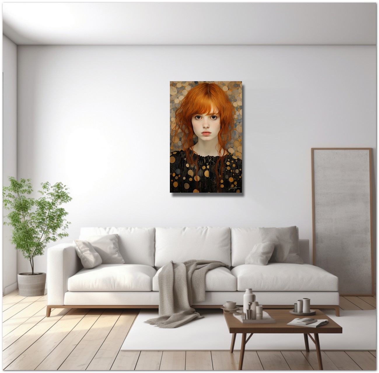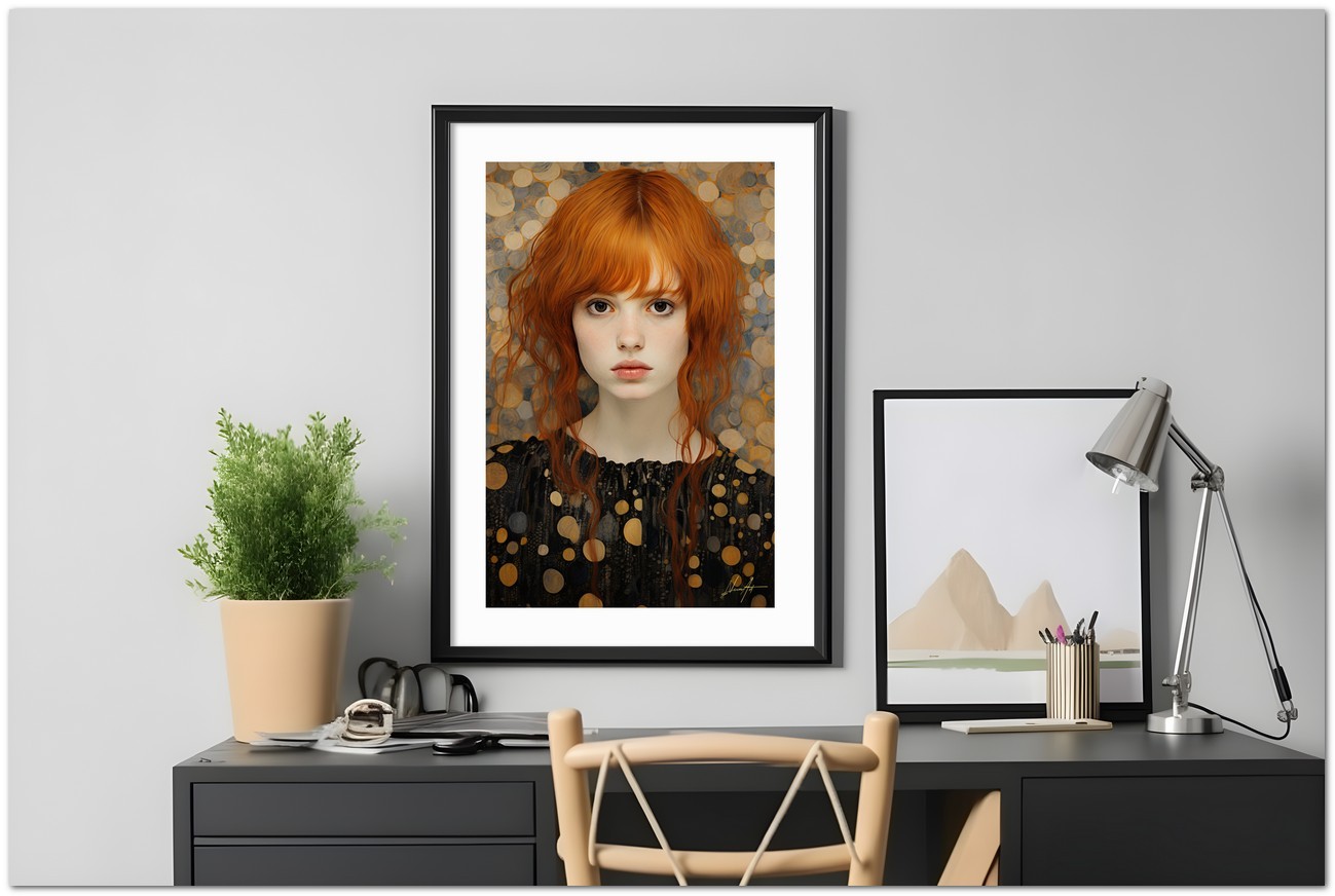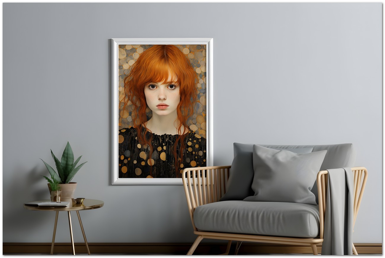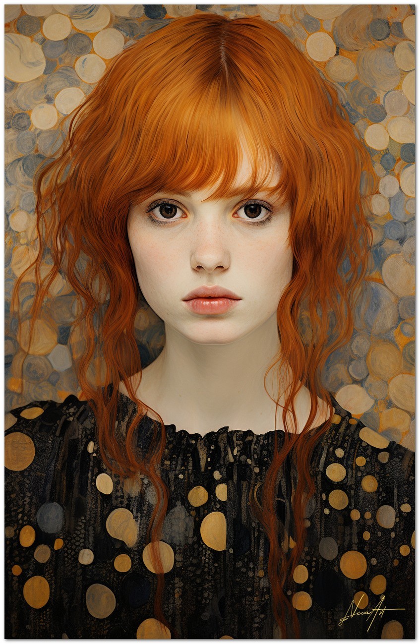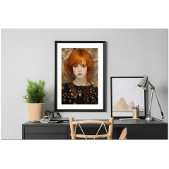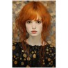In an environment enveloped in yellow and golden hues, a female figure emerges as the central focus. Her pale skin and red hair contrast beautifully with her golden surroundings. His expression is serene and contemplative, with deep eyes that seem to look beyond the canvas. The work can be associated with the Realism pictorial style, given the detailed and faithful representation of natural elements. About This Work: Classification, Techniques and Styles