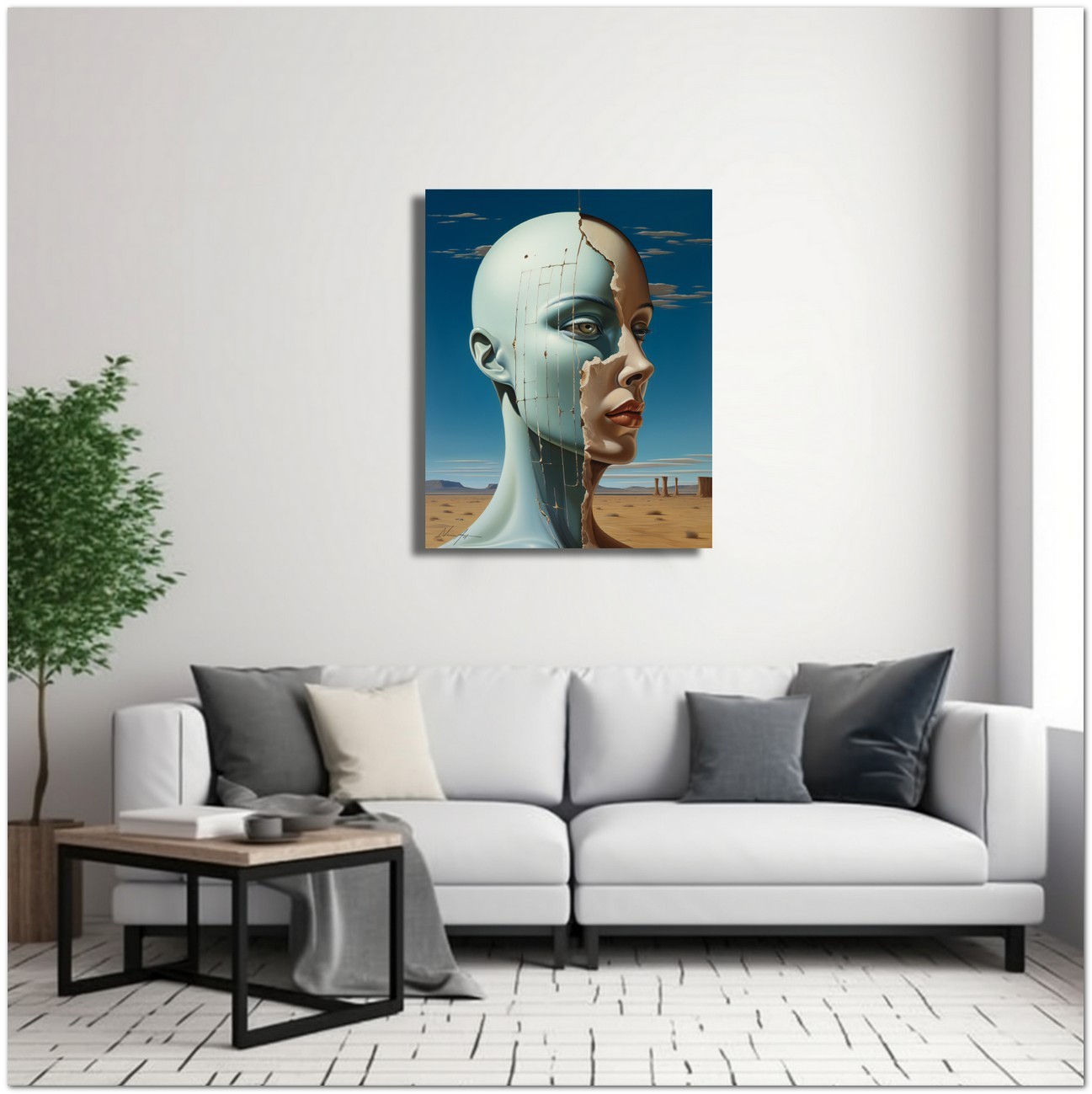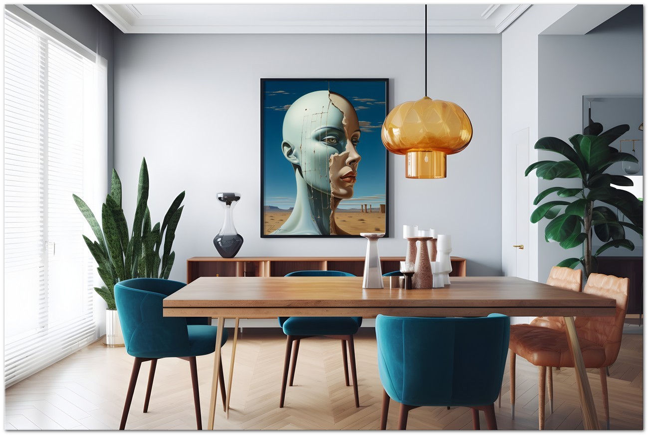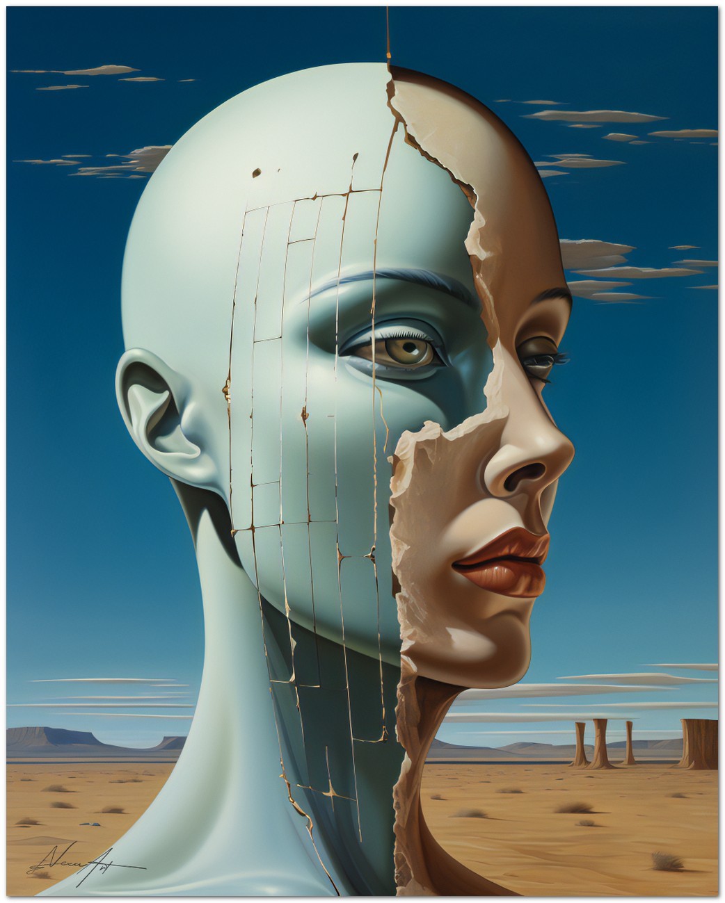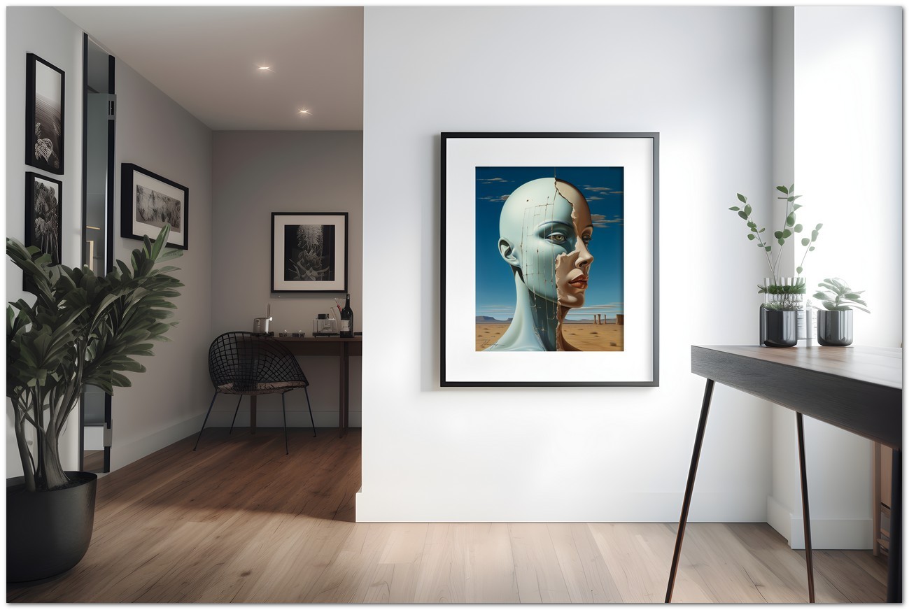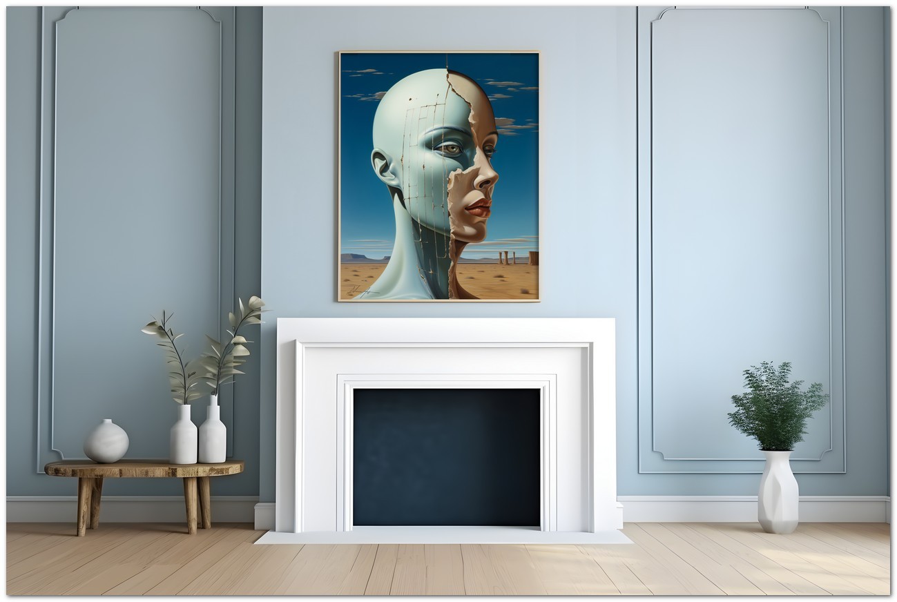 "Desertica e Desolata" is a fascinating digital work that portrays the portrait of a woman, emerging from the background of a vast and desolate desert. His face, represented with precision and grace, becomes the fulcrum of the composition, with eyes that express depth and mystery, almost lost in a sea of contemplation. The work represents an interesting fusion of surrealism and contemporary art, with a mix of realistic elements in a fantastic context and the combination of different images in a single fascinating picture. Details of the work 'Desertica e Desolata': Classification, Techniques and Styles