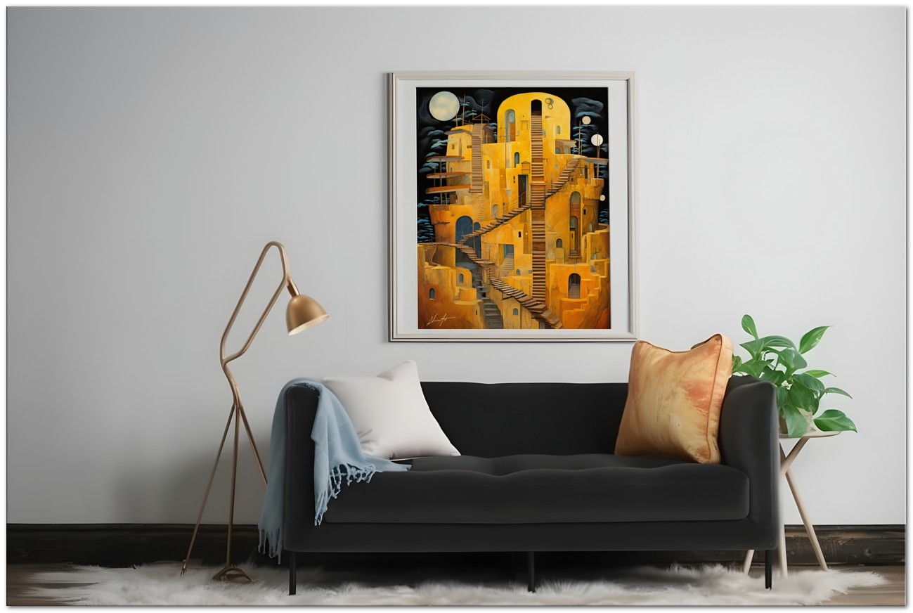 « Torre di Luce » est reproduite avec la technologie d'impression Fine Art Giclée sur toile canvas de haute qualité, garantissant un rendu chromatique exceptionnel et une durabilité de niveau muséal.