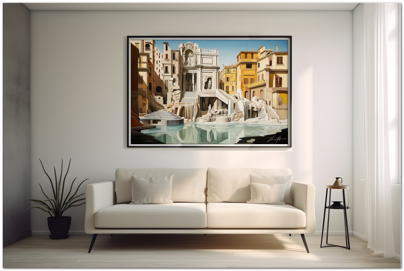« Fontana Urbana » est reproduite avec la technologie d'impression Fine Art Giclée sur toile canvas de haute qualité, garantissant un rendu chromatique exceptionnel et une durabilité de niveau muséal.