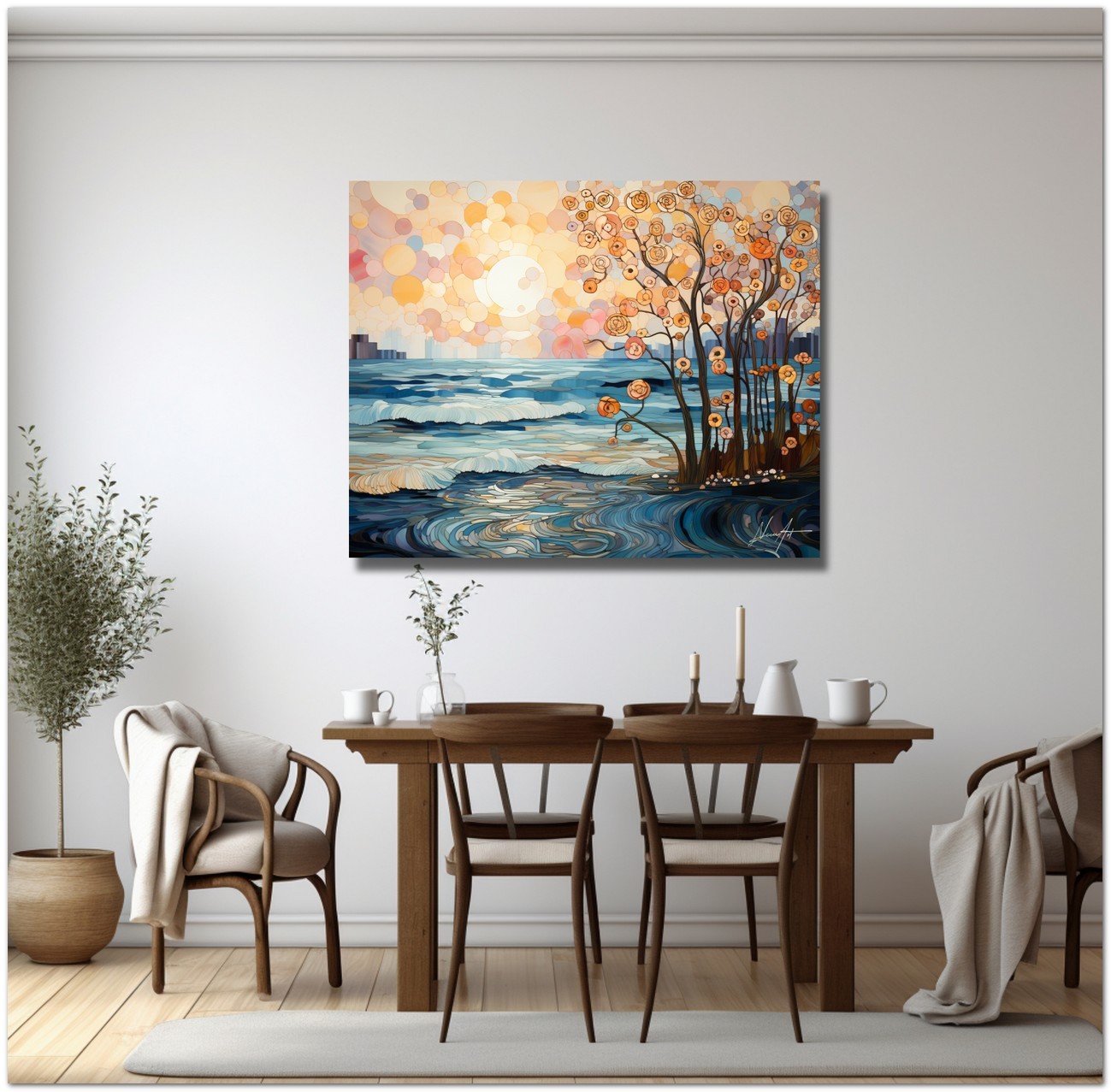 Dimensions : Chaque œuvre est imprimée dans un format unique, avec une largeur de 60, 80 ou 100 cm et une hauteur proportionnelle à l'image originale. La dimension spécifique est choisie en fonction de la composition de l'œuvre pour garantir le meilleur rendu visuel.