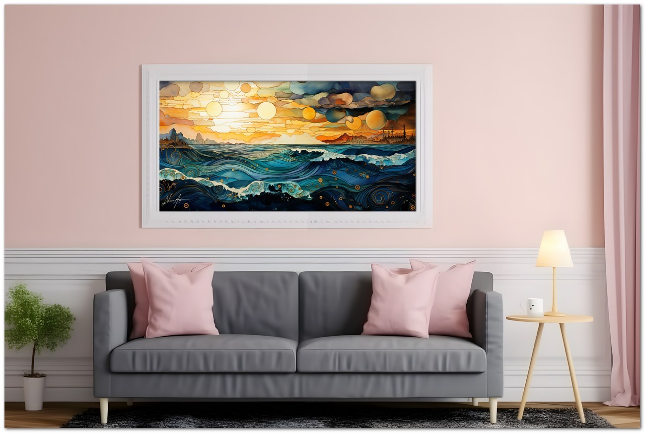 « Sinfonia del Crepuscolo Marino » est reproduite avec la technologie d'impression Fine Art Giclée sur toile canvas de haute qualité, garantissant un rendu chromatique exceptionnel et une durabilité de niveau muséal.