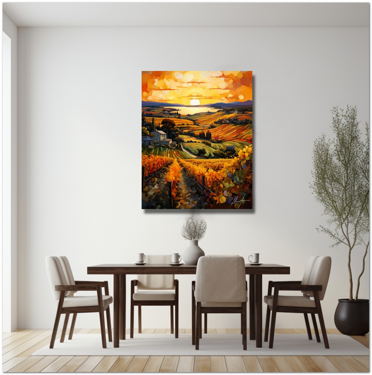 « Langhe al Crepuscolo » est reproduite avec la technologie d'impression Fine Art Giclée sur toile canvas de haute qualité, garantissant un rendu chromatique exceptionnel et une durabilité de niveau muséal.