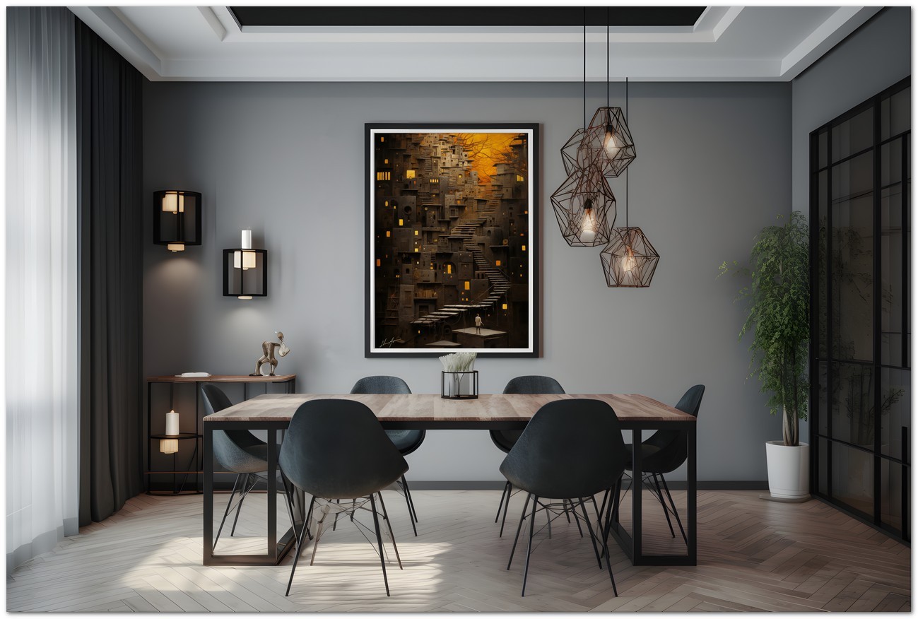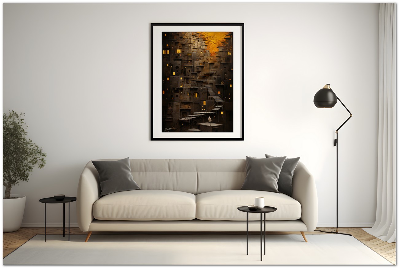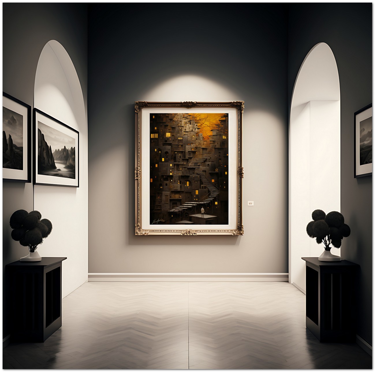 Dimensions : Chaque œuvre est imprimée dans un format unique, avec une largeur de 60, 80 ou 100 cm et une hauteur proportionnelle à l'image originale. La dimension spécifique est choisie en fonction de la composition de l'œuvre pour garantir le meilleur rendu visuel.