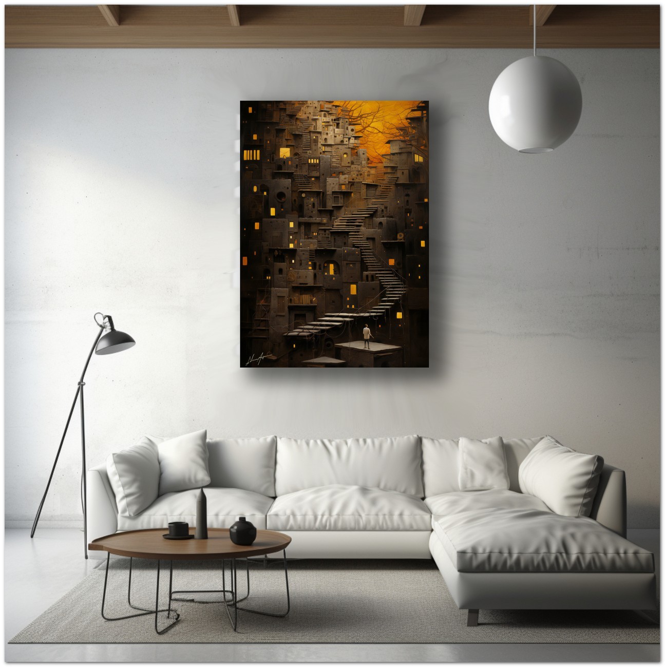 « L'Uomo del Tempo Urbano » est reproduite avec la technologie d'impression Fine Art Giclée sur toile canvas de haute qualité, garantissant un rendu chromatique exceptionnel et une durabilité de niveau muséal.