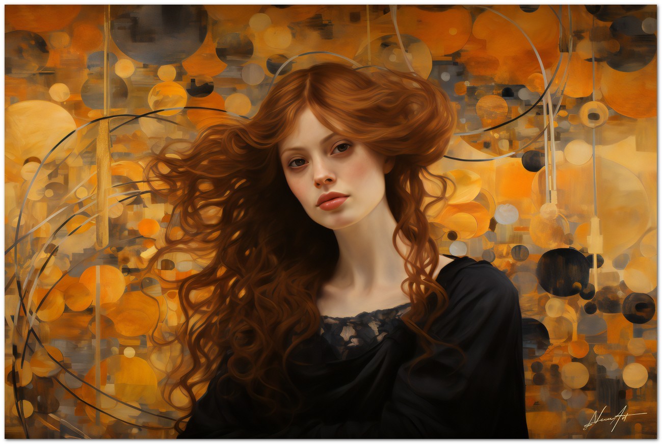 "FireRed" est une œuvre numérique qui frappe par son portrait intense d'une femme rousse. Son visage expressif et ses cheveux flottants sont rendus avec une grande habileté, entraînant le spectateur dans un monde énigmatique et fascinant. Le fond de l'œuvre joue avec les nuances de noir et d'orange, créant un contraste qui met en valeur le sujet et véhicule une atmosphère vibrante et dynamique. Détails de l'œuvre 'Rouge Feu' : Classification, Techniques et Styles